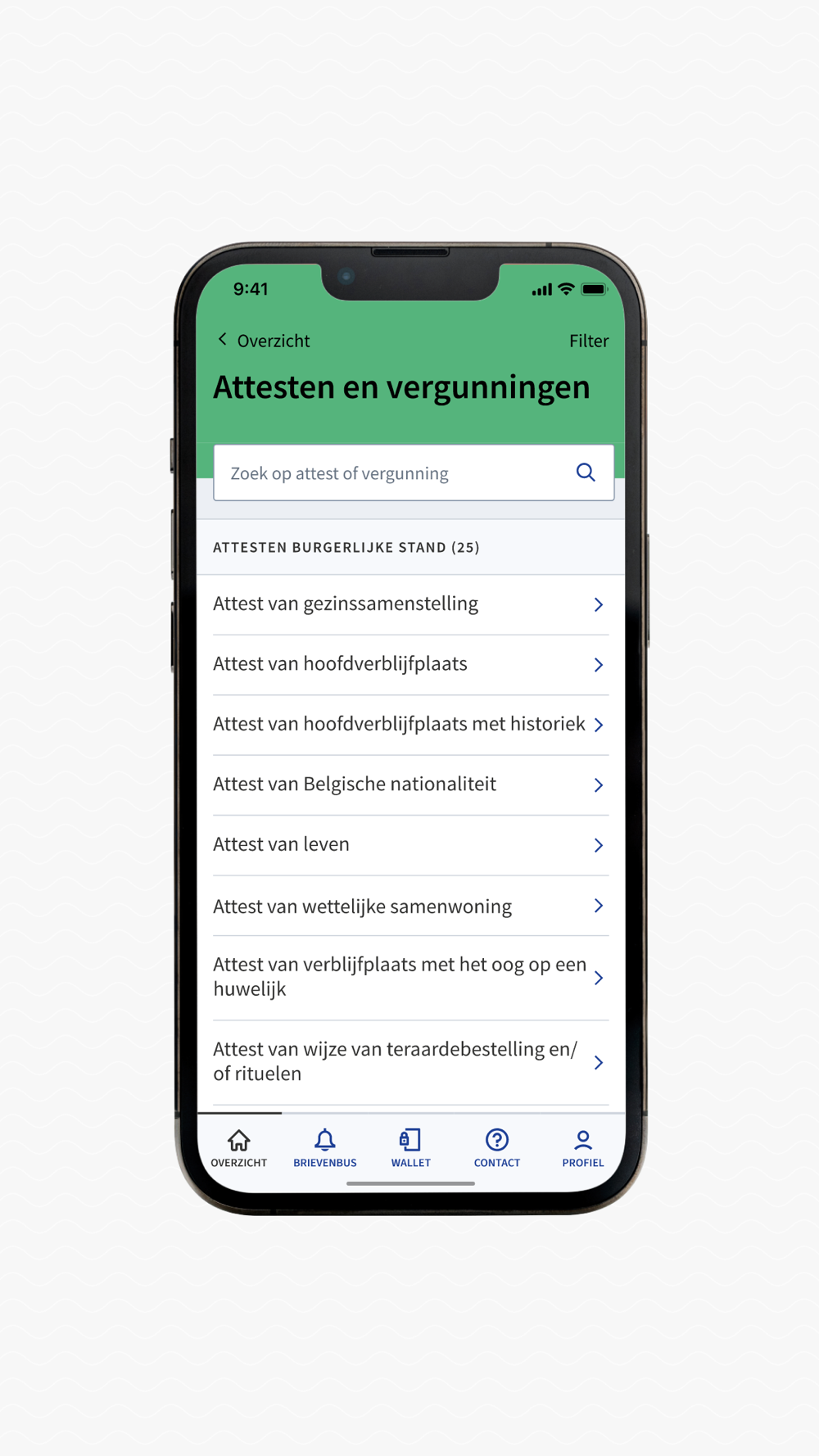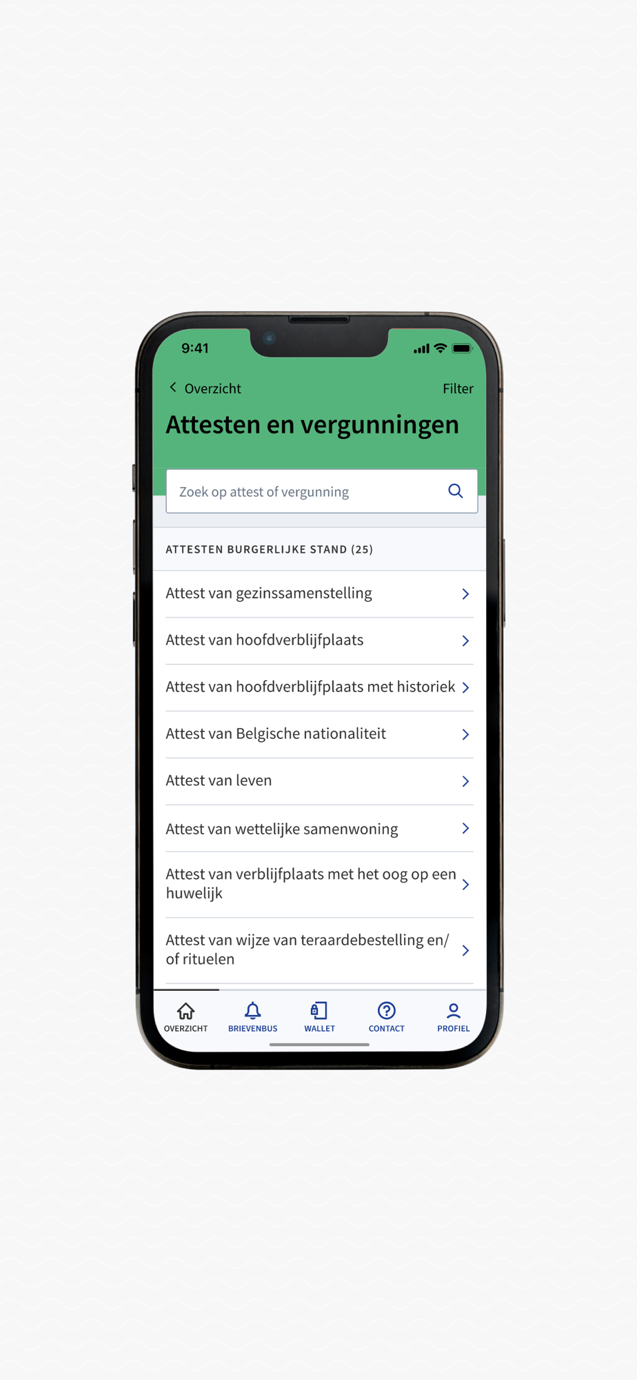 Alle functionaliteiten van de algemene app Mijn Burgerprofiel van de Vlaamse overheid zijn ook terug te vinden in de versie van Buggenhout.