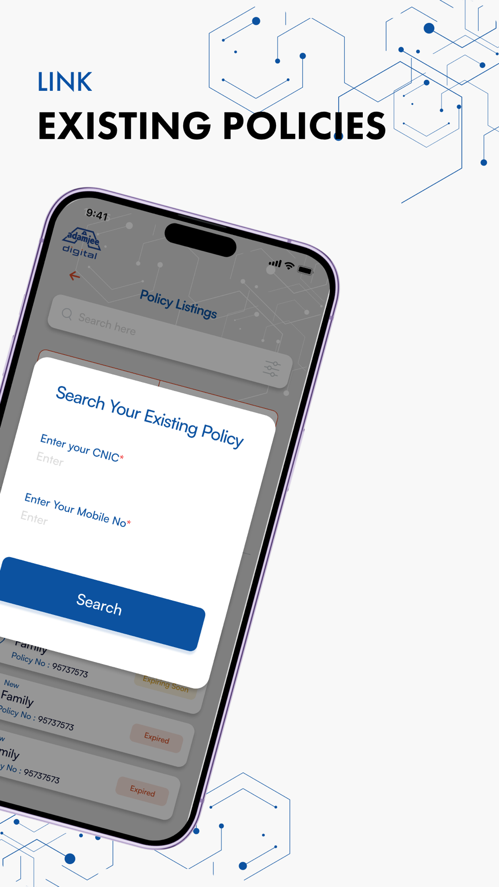 Adamjee Digital App – your go-to for effortless Insurance and Takaful management. Purchase realtime policies with a few taps, access details anytime, and submit claims seamlessly. Get renewal reminders, stay informed with updates, and rest easy with claims and endorsement services. Download today for a simplified insurance and takaful experience, where convenience meets reliability.Instant Quotes, Policy Management, Digital Health Cards, Claims Processing, Renewal Reminders, 24/7 Customer Support, Seamless Payments, Personalized Coverage Recommendations, Secure Document Storage, Exclusive Discounts, and a platform for your insightful Feedback and reviews are all combined into one innovative app. Your peace of mind, simplified.