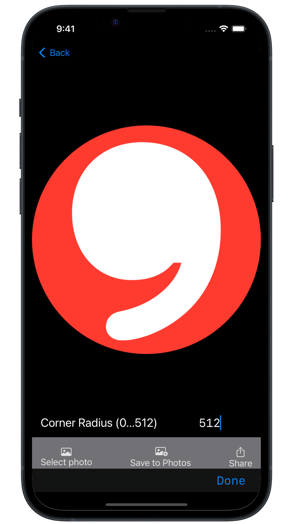 By manipulating the slider within the range of 0 to the maximum possible corner radius determined by the selected photo, you can dynamically and interactively fine-tune the corner radius, seamlessly adjusting it back and forth until you achieve the desired level of satisfaction.