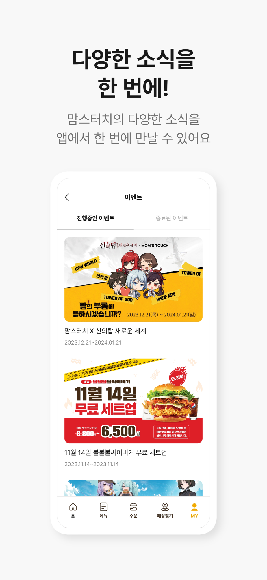 - 맘스터치의 다양한 소식을 앱에서 한 번에 빠르고 편리하게 만날 수 있어요