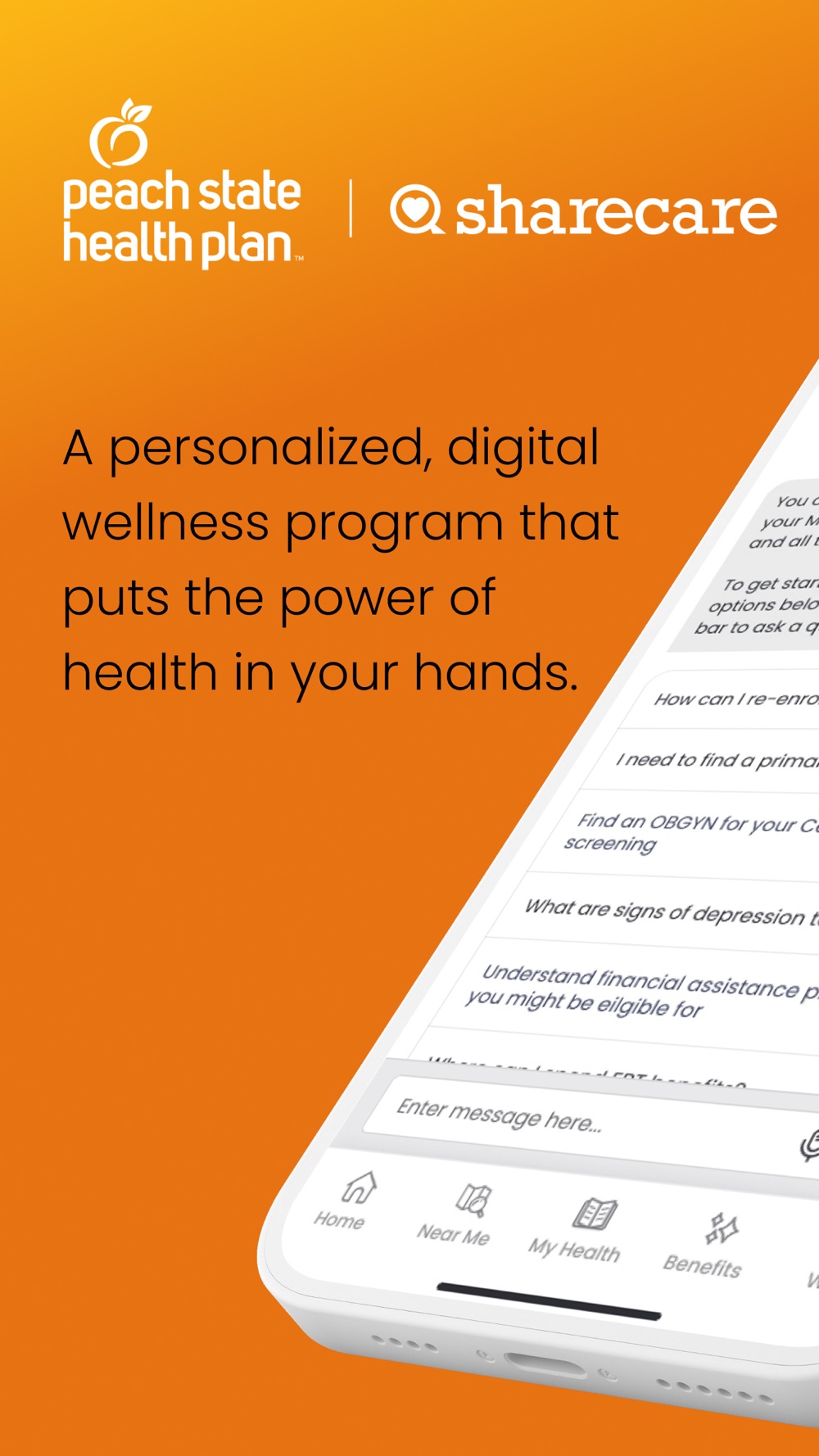 Download the Peach State Health Plan app by Sharecare today. You’ll gain everything you need to take control of your health and benefits. Your path to a healthier, more rewarding life starts here.
