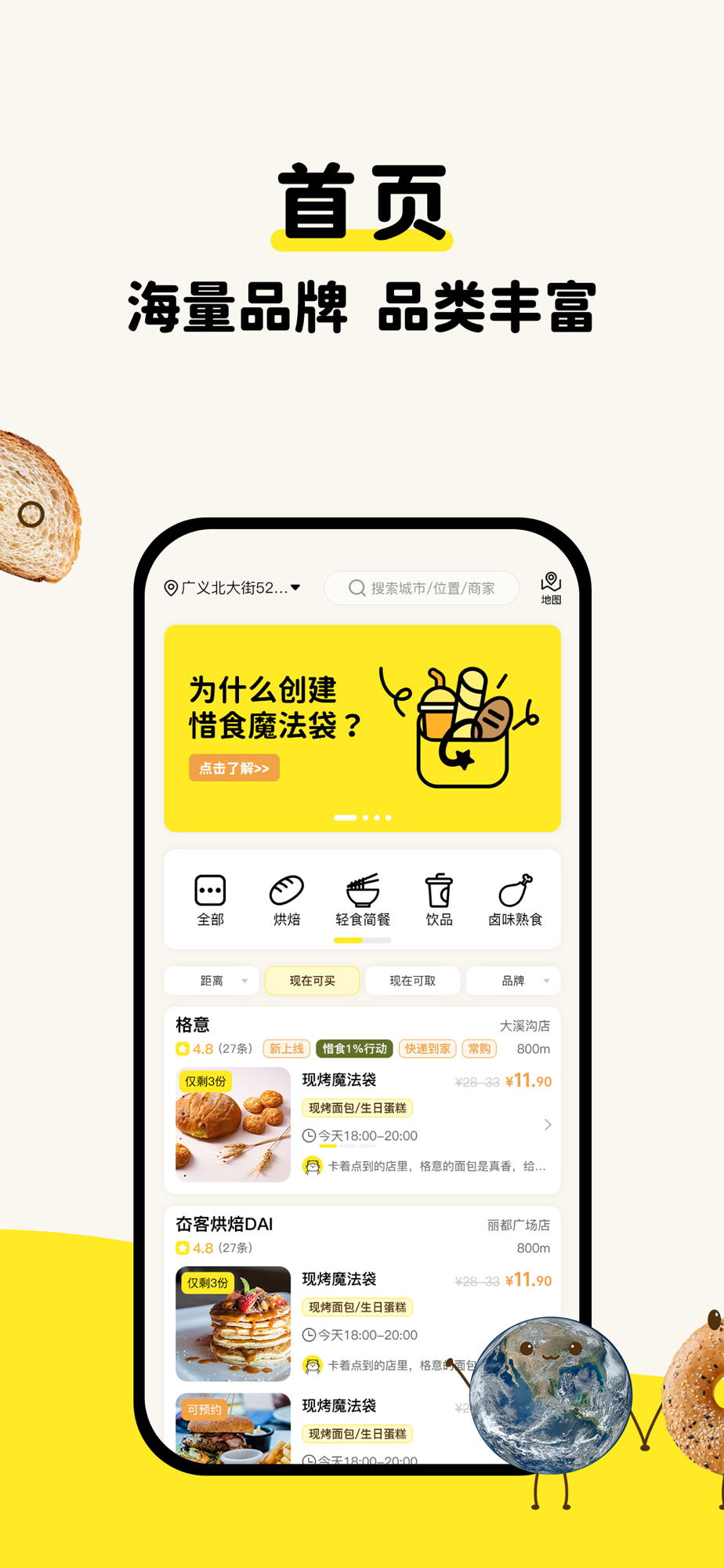“惜食魔法袋”是一家社会企业,致力于让天下没有一粒浪费的粮食,创造珍惜粮食和零损耗的社会价值和商业价值。 鉴于当前商超、烘焙、餐饮、果蔬、零食、卤味、饮品、鲜花、酒店等品类生产超量商品的损耗和浪费处理,“惜食”提出了创新型解决方案,通过“惜食”平台,商家发布生产超量的魔法袋,用户以极低折扣购买,“惜食人+惜食+惜食商家”一起实现零浪费、环保绿色的低碳生活。 “惜食”团队是长期主义者,拥有10余年的创业、管理、技术、产品、运营、市场、商务、等领域经验,热爱本地生活的烟火气,同时有公益、战略、食品、零售、媒体方面专家顾问朋友们,作为惜食共同的大脑。 公司目标是成为一家珍惜粮食和保护环境的社会企业,提高收益并传递企业社会责任主张,实现节能、低碳、环保的社会公益价值。