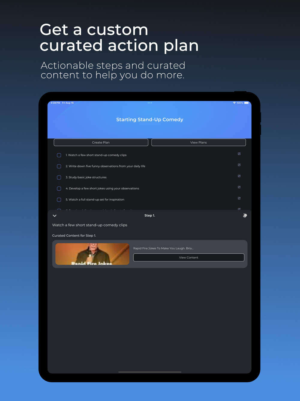 - Do the thing: follow the steps and watch content curated to help you follow through.