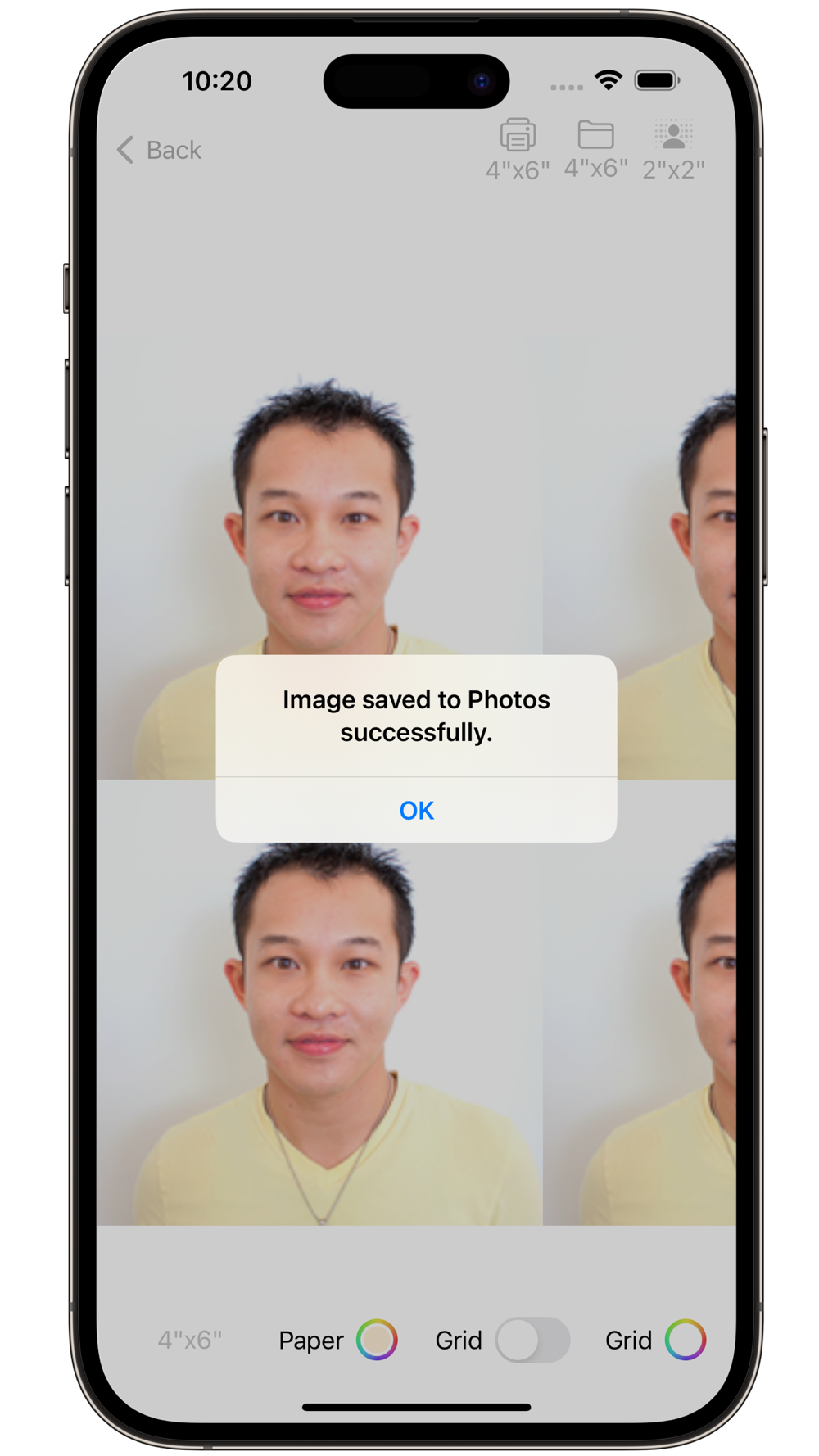 US Passport & Visa Photo let you create print ready panel of 2"x2" 300 DPI JPEG photo from your desktop computer of your iPhone easily.
