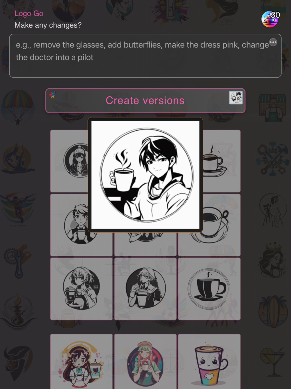 2. Generating Concepts: After submitting your description, Logo Go's AI will process the information and create a set of 9 unique logo drafts. These drafts serve as a diverse starting point, offering you a variety of styles and elements that resonate with your brand's description. The AI employs advanced algorithms to ensure that each draft is not only aesthetically pleasing but also relevant to your business sector and target audience.