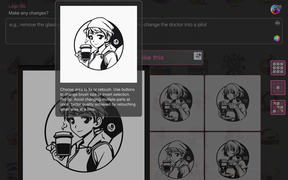 1. Briefing the AI: When you launch the app, you'll be prompted to enter a short description of your business. You can include your business name, the industry you operate in, any preferred color schemes, and the overall vibe you aim for (e.g., modern, vintage, sophisticated, playful). The more precise your description, the more tailored the logo concepts will be to your brand's personality and values.