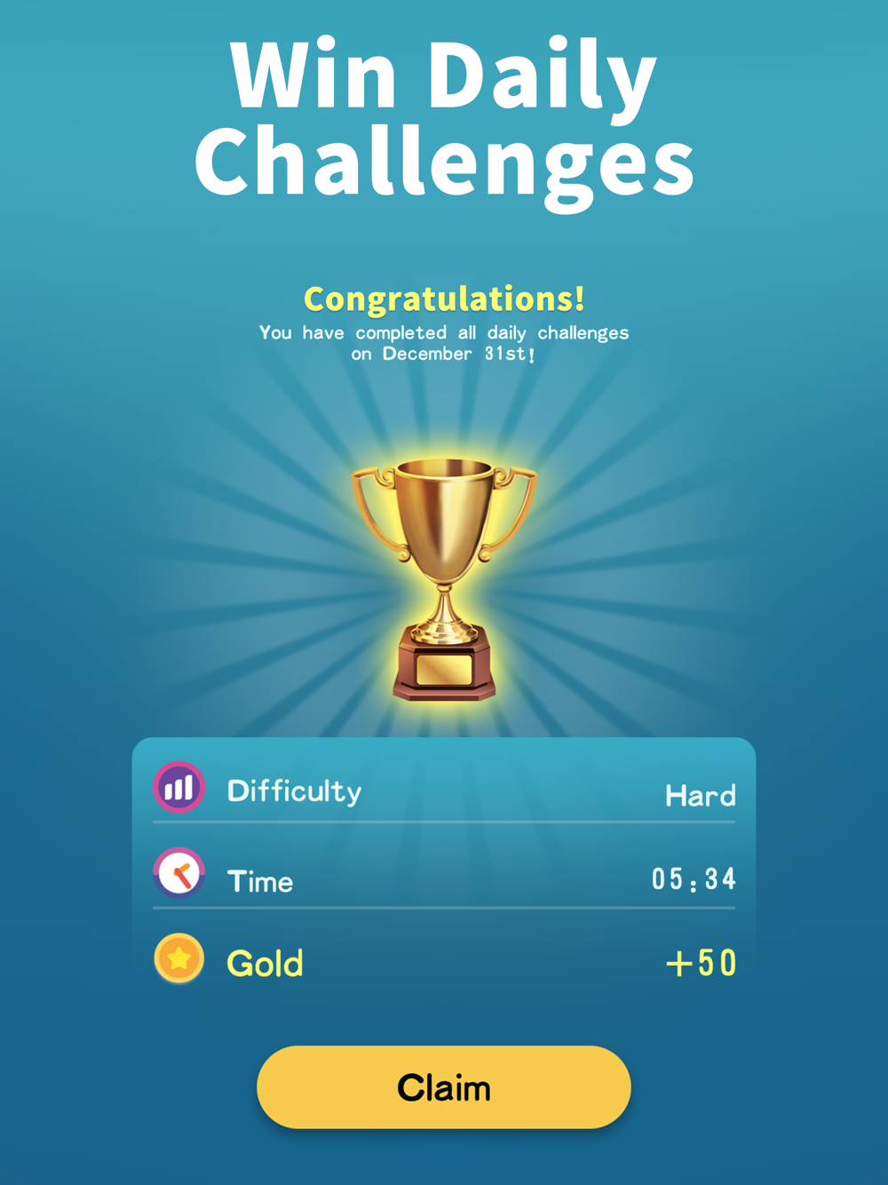 2. Challenge different Sudoku puzzles every day, complete the challenges, and unlock golden cups.