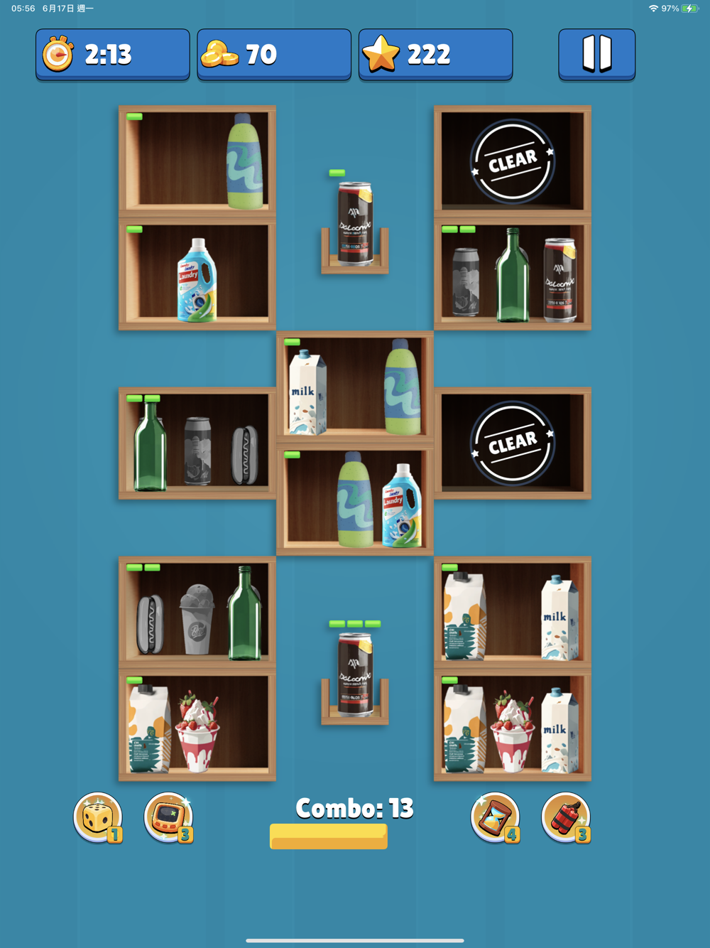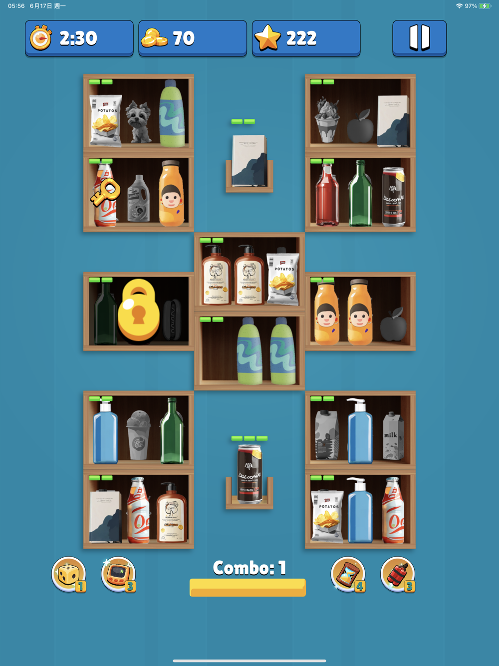 The game is straightforward, just drag the same 3 products to several shelves for pairing or triple matching.