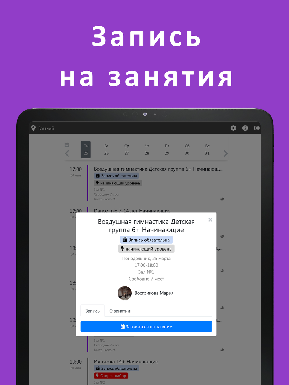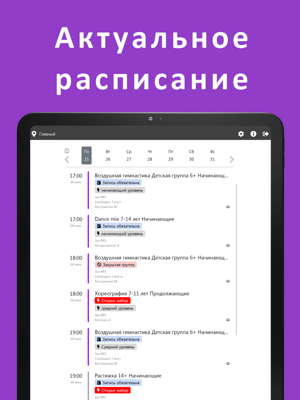 С помощью приложения вы сможете смотреть расписание, записываться на тренировки и отслеживать свои посещения в студии танцев THE BAT.