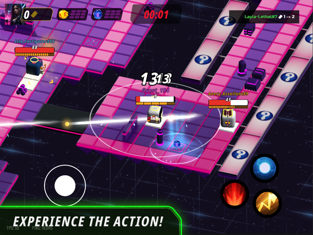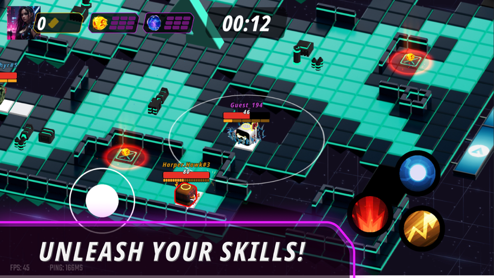 – Command a diverse roster of characters, each equipped with unique abilities like Freezing Blast and Fireball, or lead fearless Qubic robots armed with dual weapons and customizable features. Engage in heart-pounding 3-minute matches with up to 4 players, where every power-up collected and level gained brings you closer to victory.