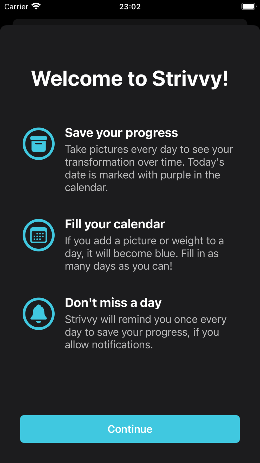 Daily Reminders: Never forget to log your progress. Strivvy sends gentle reminders to help you stay on track every day.
