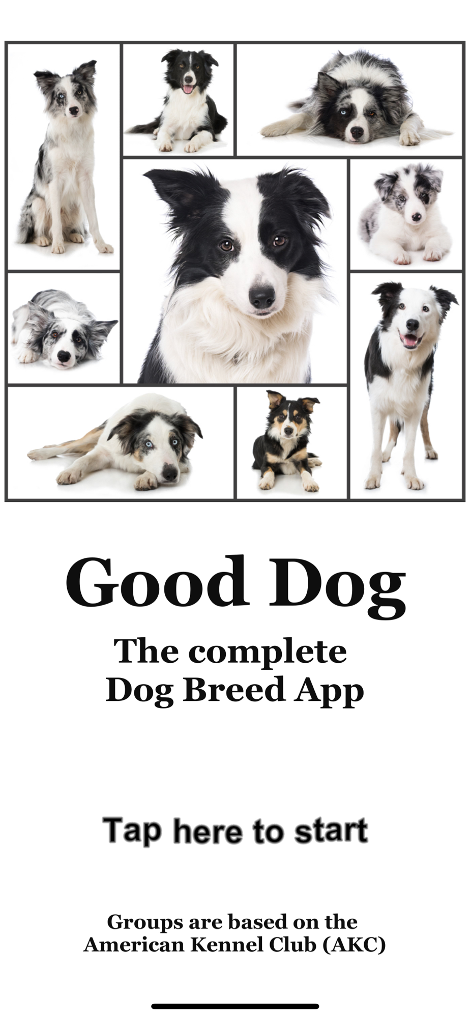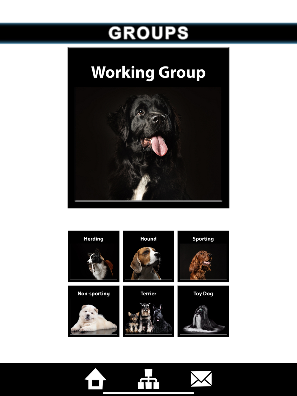 The Good Dog App includes information about different dog breeds and how they are classified. In this app, the classification for each breed is based on the American Kennel Club (AKC), which includes the following groups:
