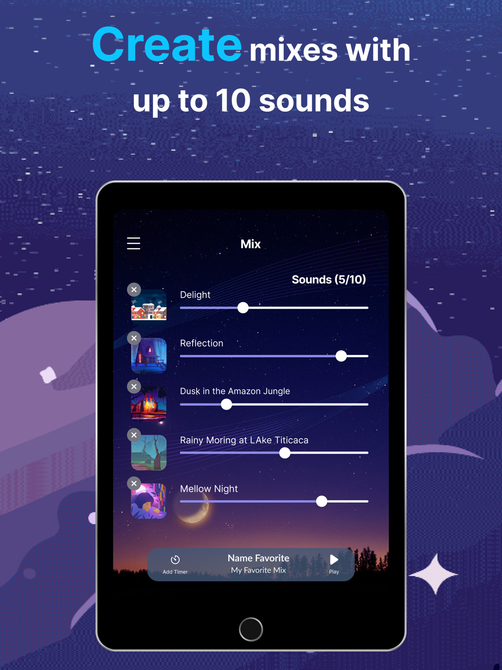 * Personalized Sleep Tools: Tailor your soundscapes with adjustable volume, smart mixing, and timer settings.