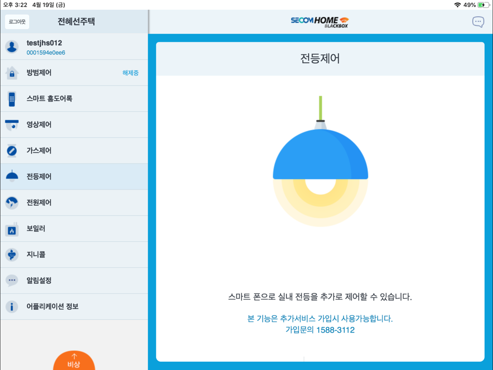 부가서비스 가입시, 전원제어, 전등제어, 가스밸브 잠금, 영상조회 등을 스마트폰으로 이용할 수 있습니다.
