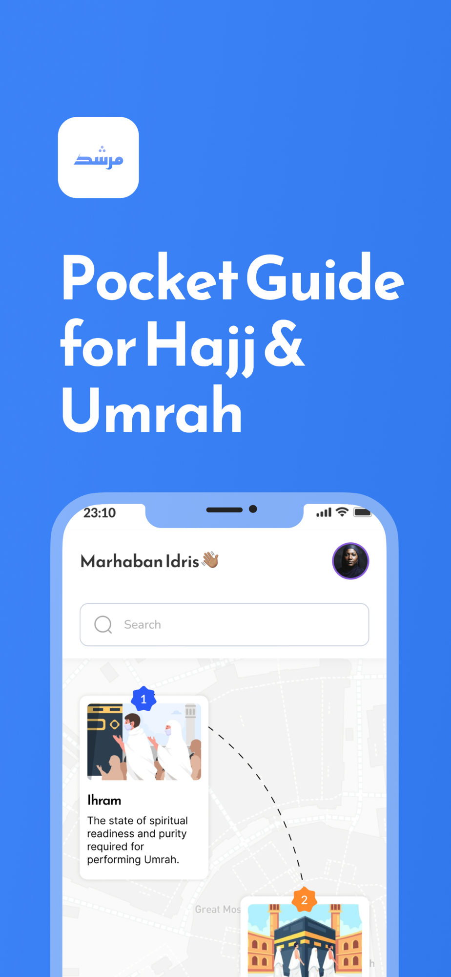 Murshid is an Islamic application that guides Muslim worshippers worldwide in performing Hajj and Umrah. It features the required Adhkars for Hajj and Umrah, the points of saying the Adhkars, and the accompanying activities of Hajj and Umrah. Murshid is a constant reminder of worship for worshippers throughout their Hajj and Umrah journey.