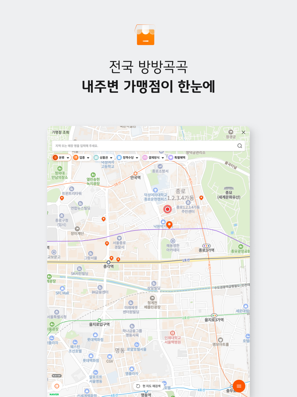 - (선택) 위치 : 내 위치 근처의 가맹점을 찾을 수 있어요.