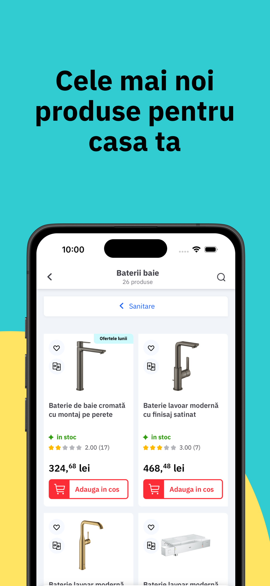 • Peste 25.000 de produse din categorii precum baie, bucătărie, grădină, interioare, materiale de construcții și unelte