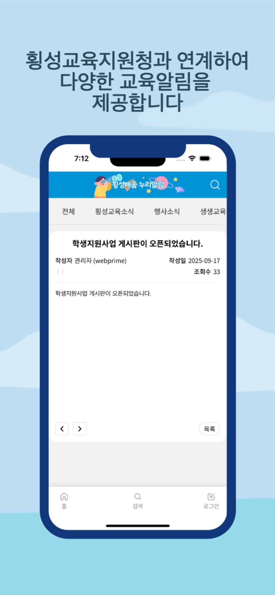 횡성군의 교육관련 컨텐츠 알림용 밴드형 온라인 플랫폼