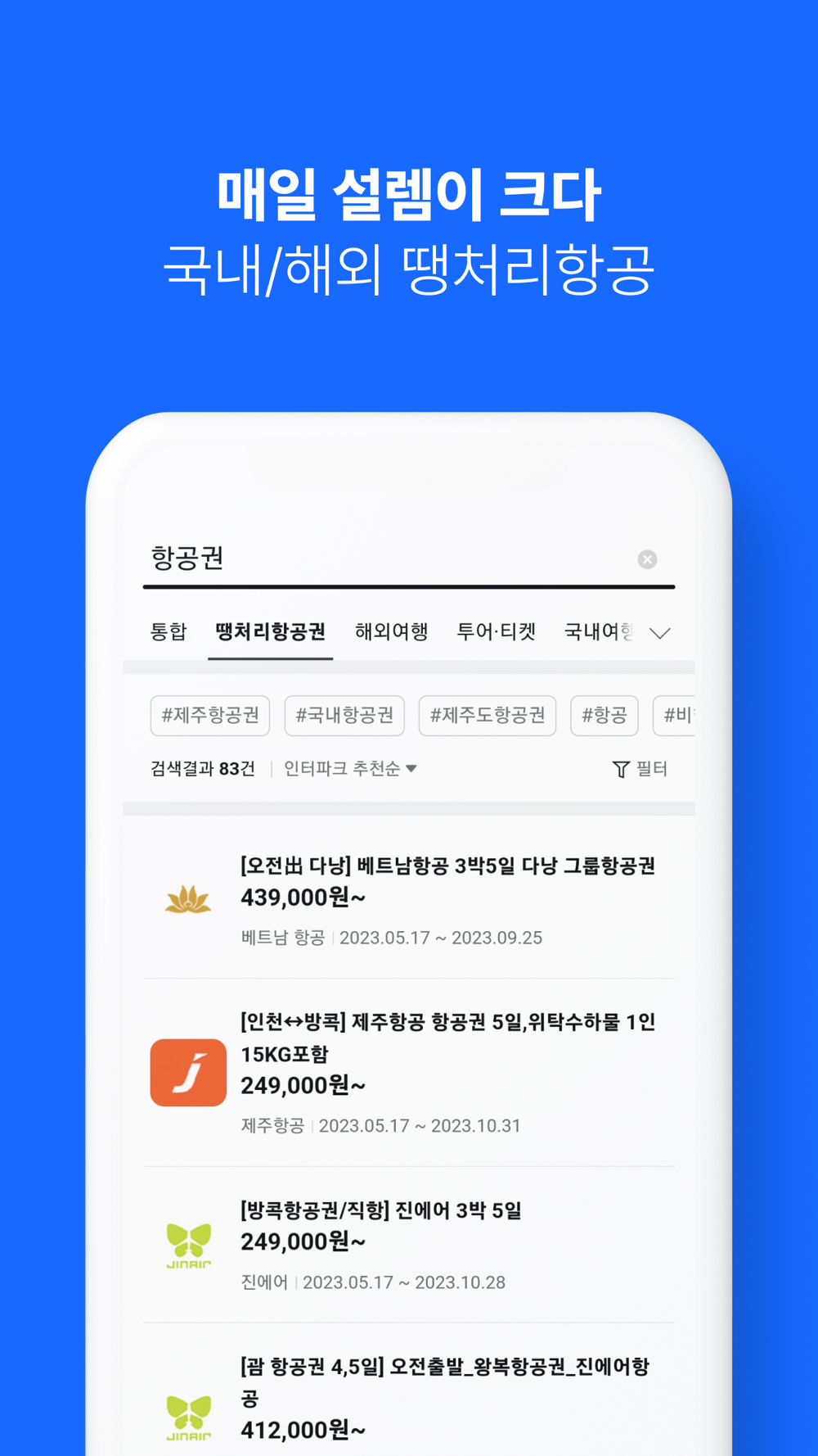 - 항공권도 노마진으로 모십니다~ 제주, 부산 전국 방방 곳곳 국내항공 특가 [쎈항공딜]
