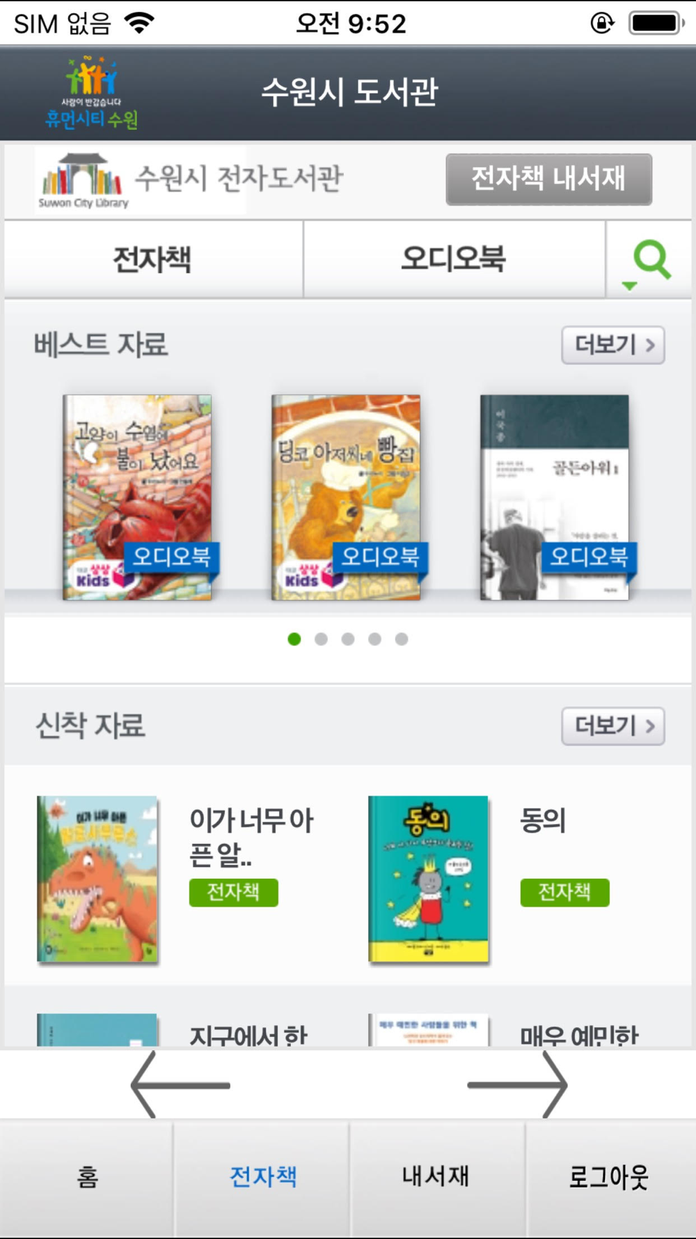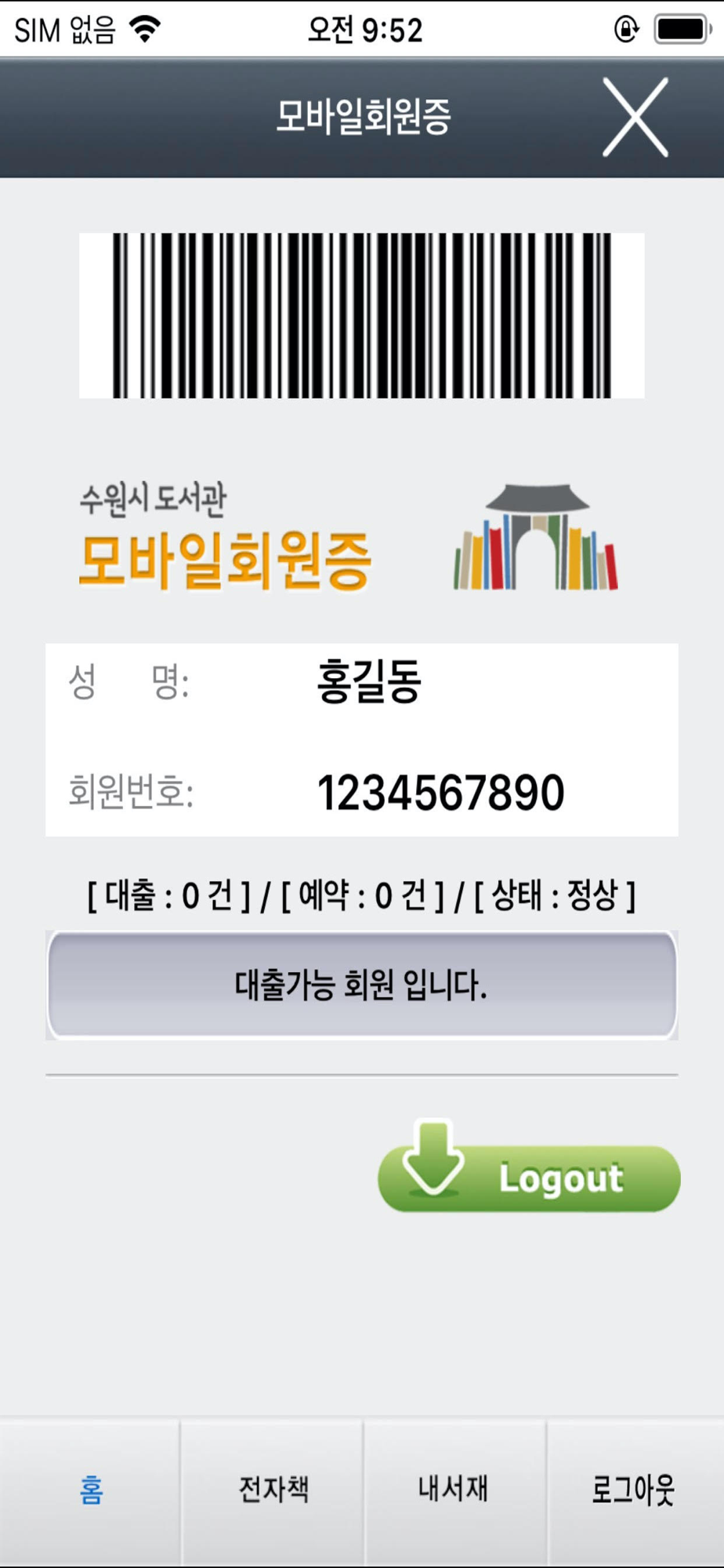 * 서비스내용: 도서검색, 모바일회원증, 도서관 안내, 전자책, 대출현황 및 이력 등