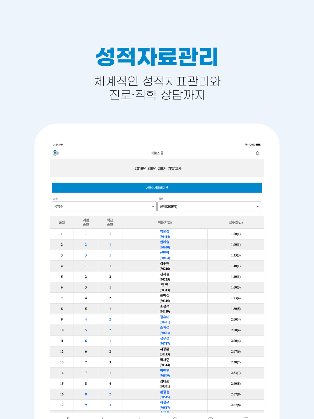 * 성적분석(내신/학평 분석 및 조회, Z점수 산출 및 시뮬레이션)