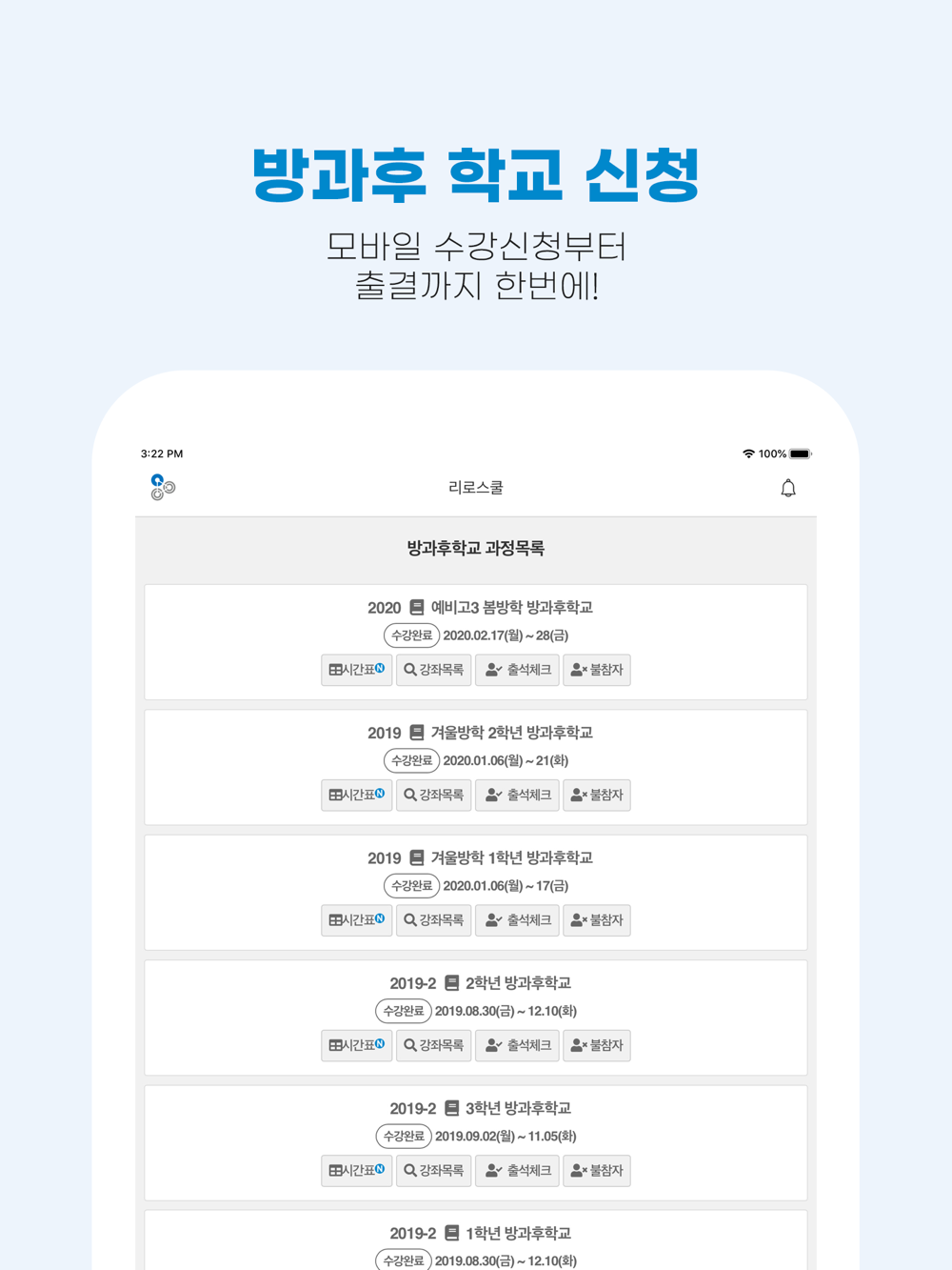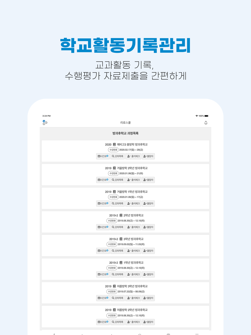 * 방과후/자습/자유학기 관리(온라인 수강신청, 출결, 회계 관리)