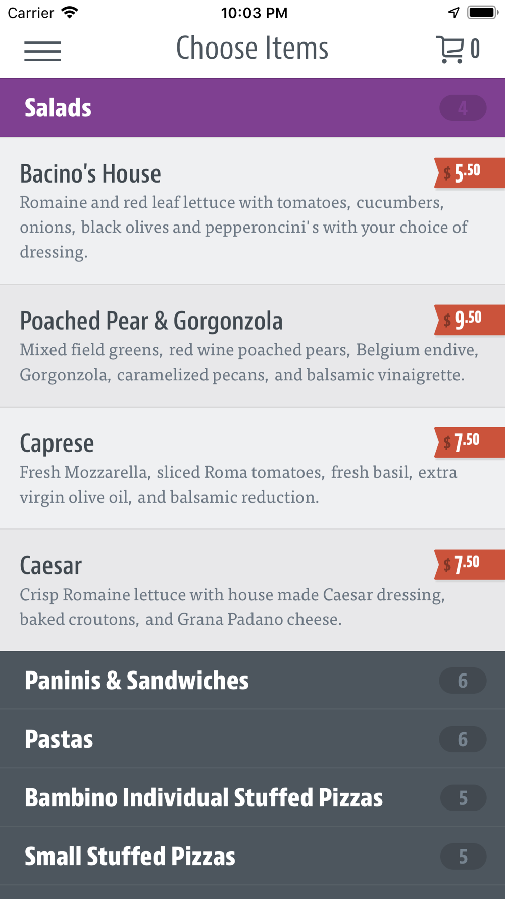 With the Bacino's mobile app, ordering food for takeout has never been easier. Scroll through our easy-to-navigate menu, select the dishes that strike your fancy, specify any special instructions, submit your payment information securely - and then sit back! A push notification will alert you when your order will be ready.