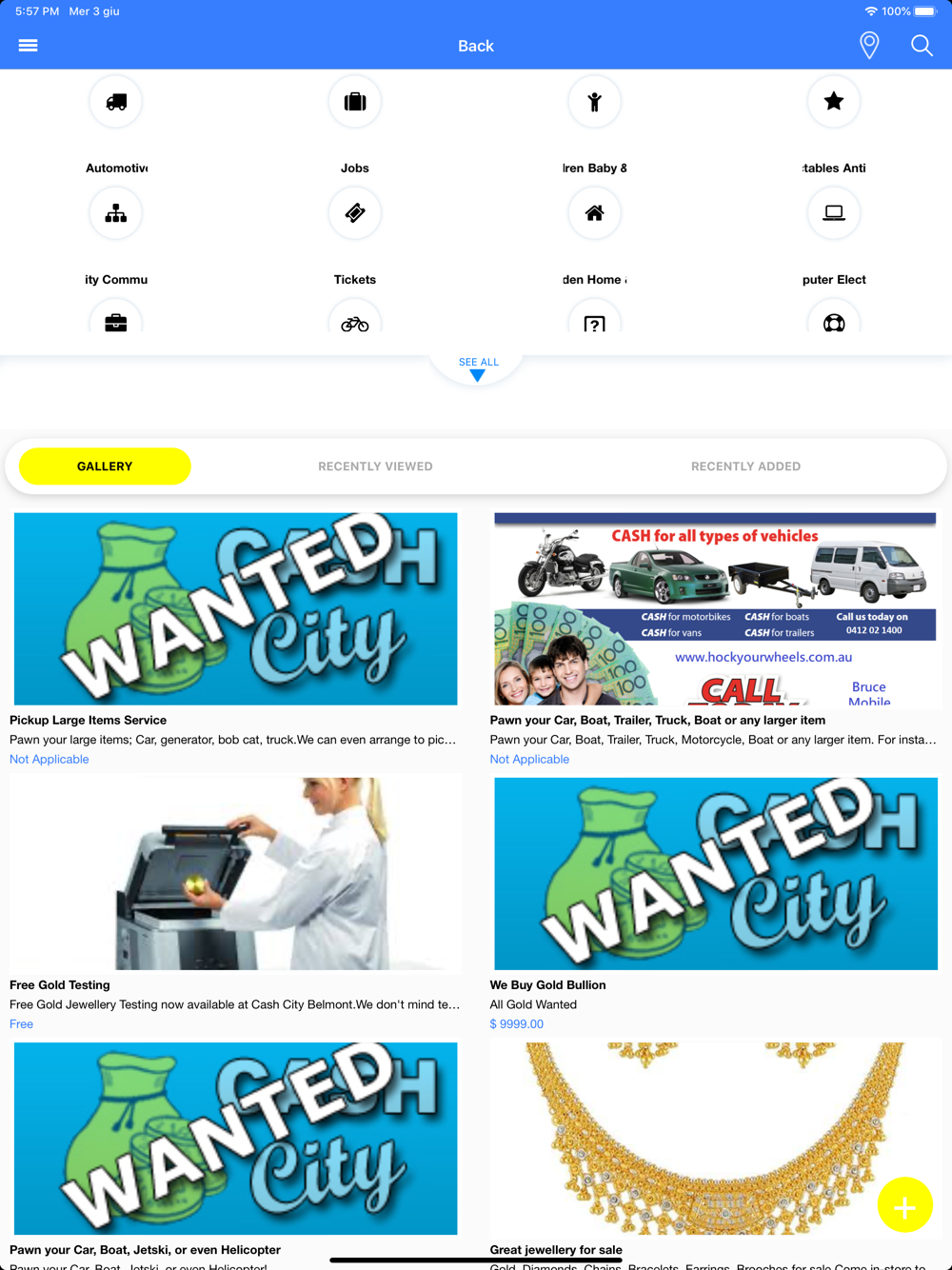 See what's selling at your local pawnbroking store or anywhere for that matter. The CashCity app and site is Australia's new online classifieds where we bring all your private ads and commercial items for sale in one convenient location. Download your free app to instantly have access to all the ads on our site. Our app makes it easy with simple tap of the finger you can see your favourite search items and see where they are in relation to you. We even have great features where you can see what other sellers are pricing their like items for which helps to compare, whether your selling or buying that great bargain.