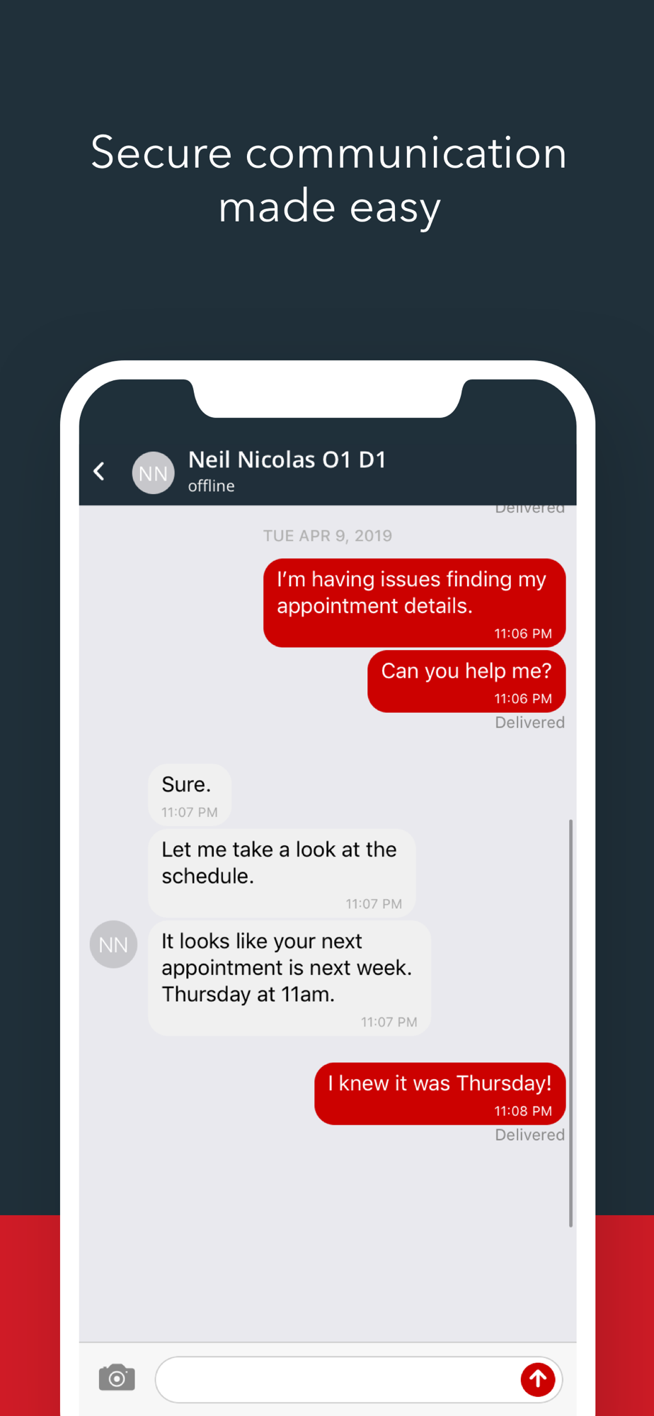 Messages sent through medroster are encrypted and deleted after 1 week to comply with HIPAA standards. You can be confident that your communications will always be secure.