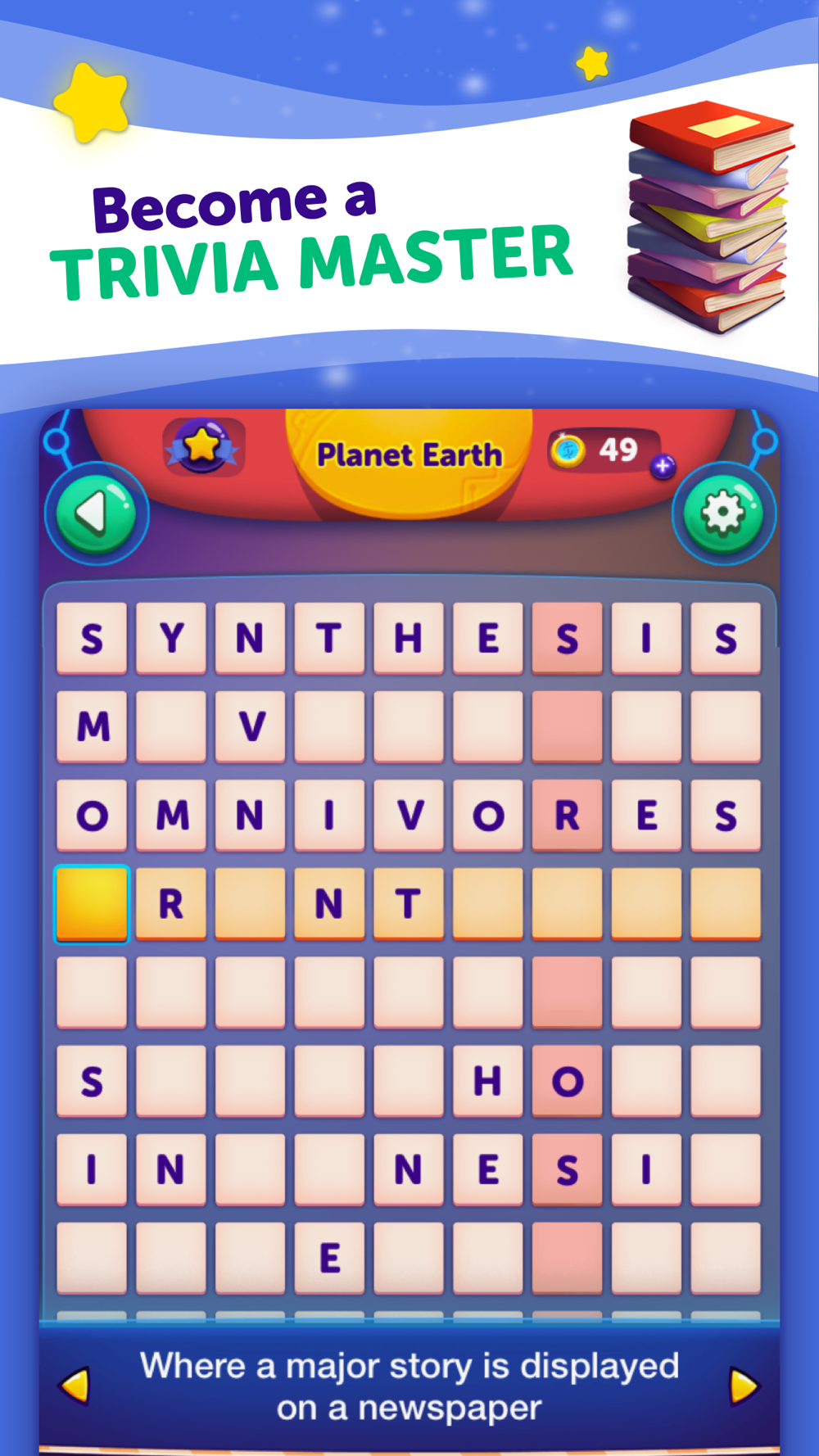 Begin with a themed crossword puzzle board and try to guess the words that fit in the boxes, each with unique trivia clues, hints, and categories. Connect the letters you are guessing and solve the clues. All crosswords have a hidden secret word to help CodyCross attain more knowledge. Are you ready to enter this crossword universe? With crossword puzzles available daily, you'll never run out of new words and spelling challenges.