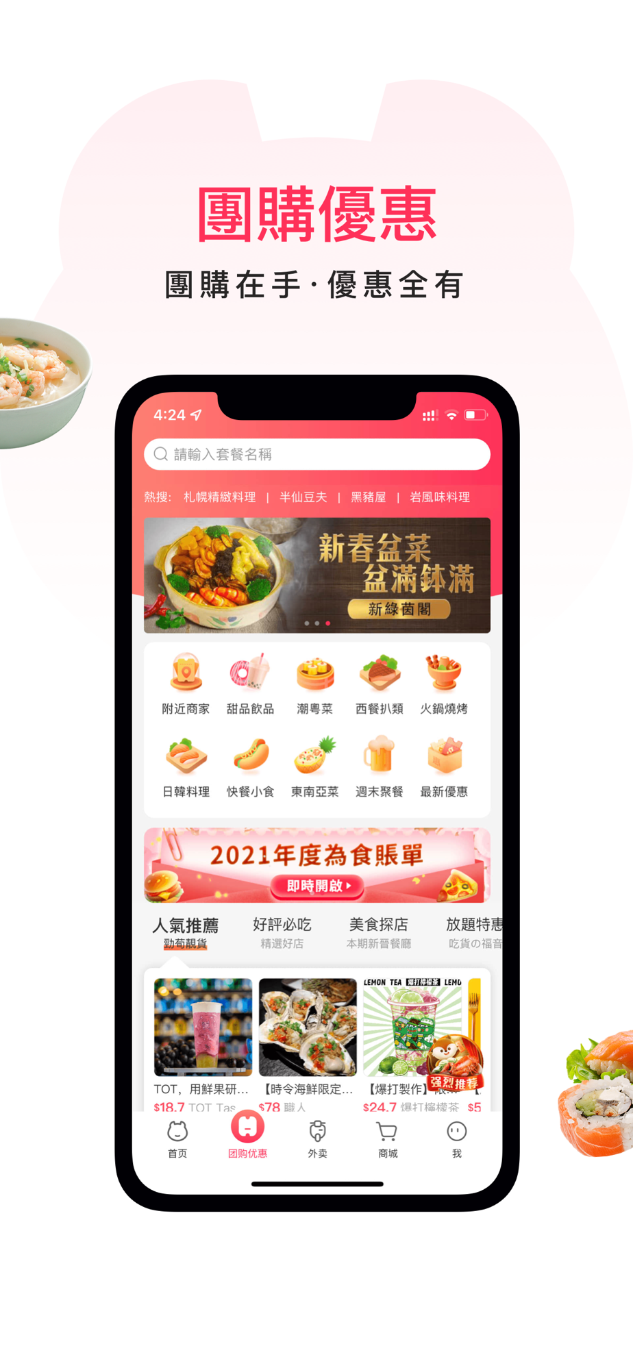 ◇團購優惠折扣秒殺,吃喝玩樂購全覆蓋;
