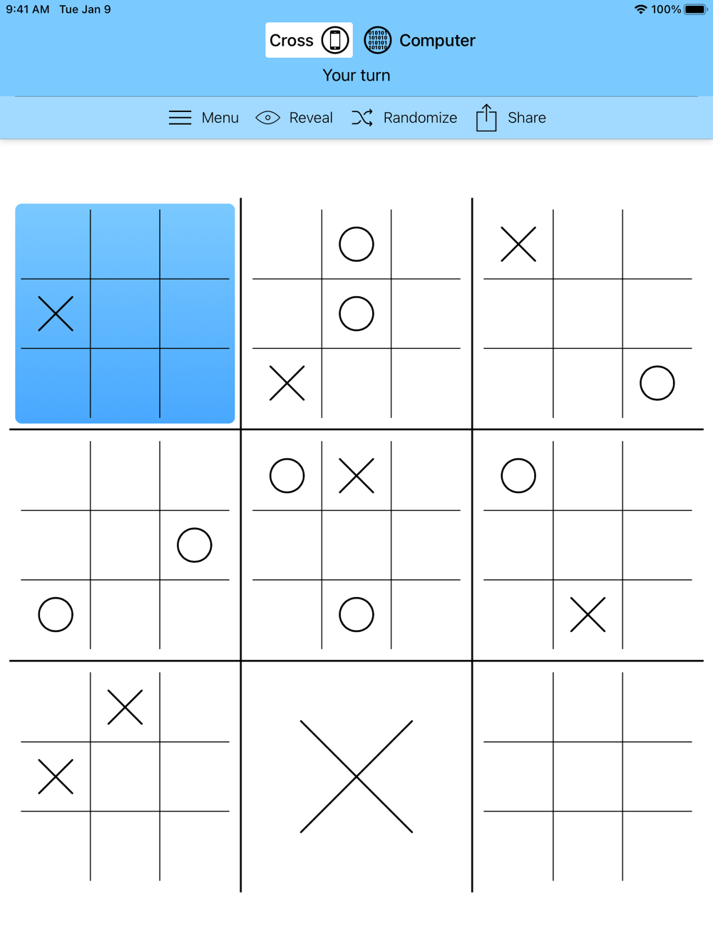 Great Tic Tac Toe game with various enhancements over the original game rules offering a whole new range of possibilities to play, and win.
