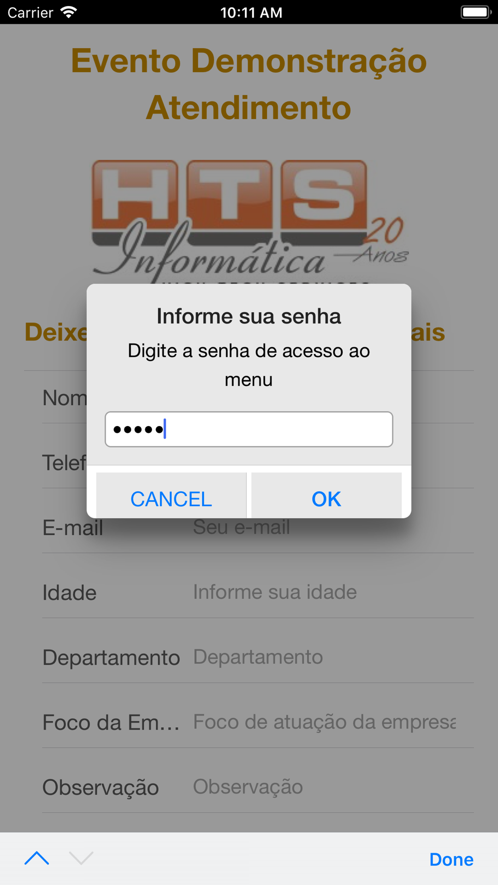 Este aplicativo (versão Atendimento) ajuda no atendimento de visitantes em eventos onde o mesmo poderá deixar seus dados de contato e assuntos de interesse. Interessante para estar acessível aos visitantes em eventos empresariais, corporativos, feiras, congressos, treinamentos e muitos outros. Pode ser uma simples palestra como uma feira de vários dias. Todos os dados registrados são consolidados ao final do evento e pode ser facilmente visualizado e trabalhado no ambiente WEB (painel).