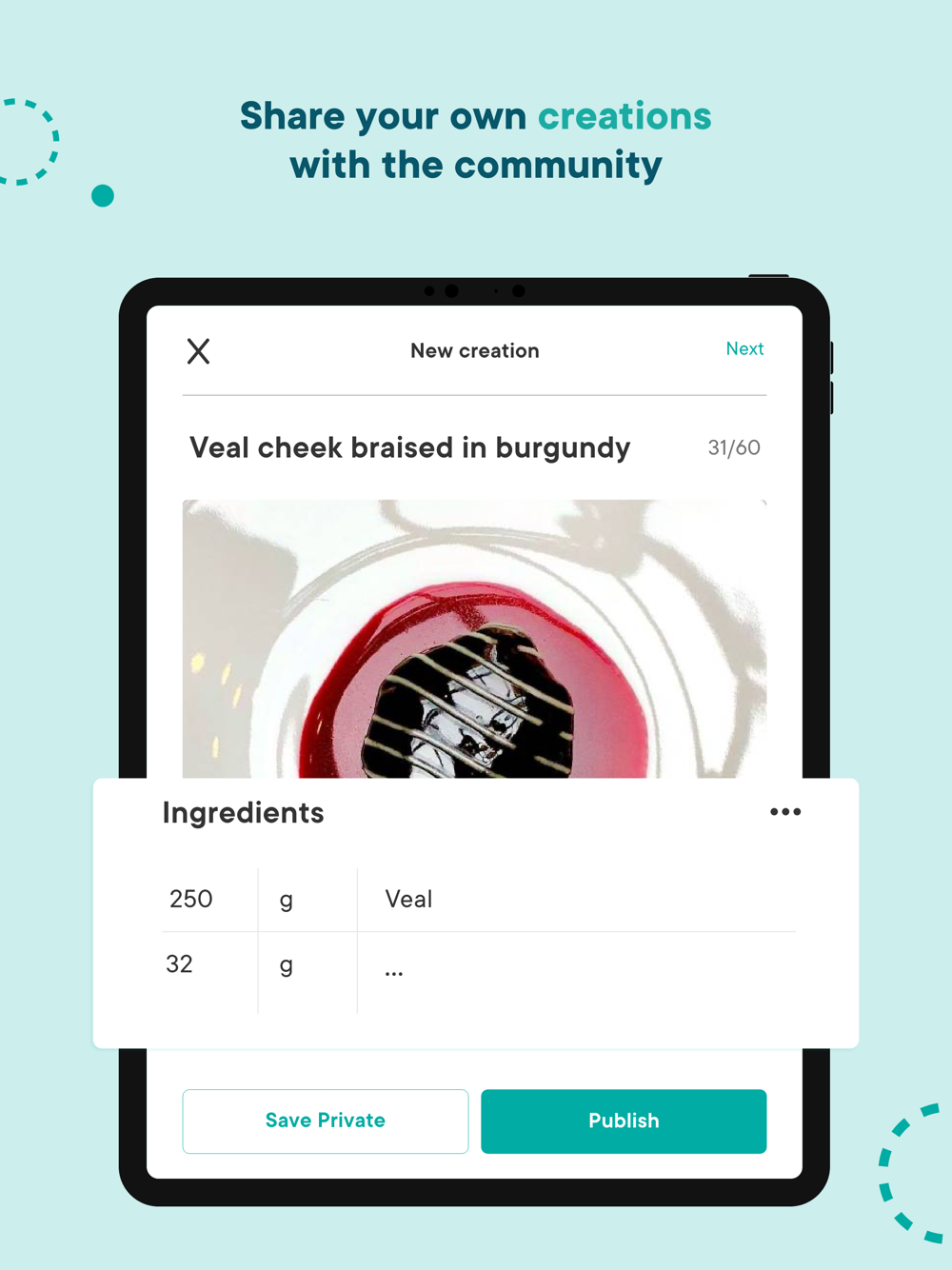 SHARE YOUR RECIPES — You can decide if you want to keep your recipes private or share them with the community. Become part of the biggest culinary knowledge hub in the world.