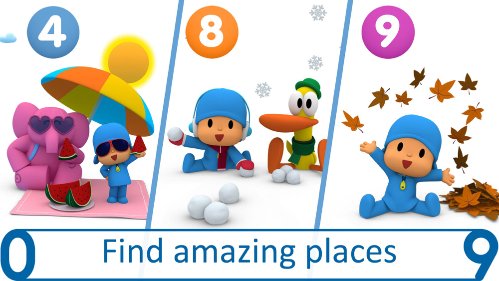 In Pocoyo 1, 2, 3 the child will learn the different numbers while playing.