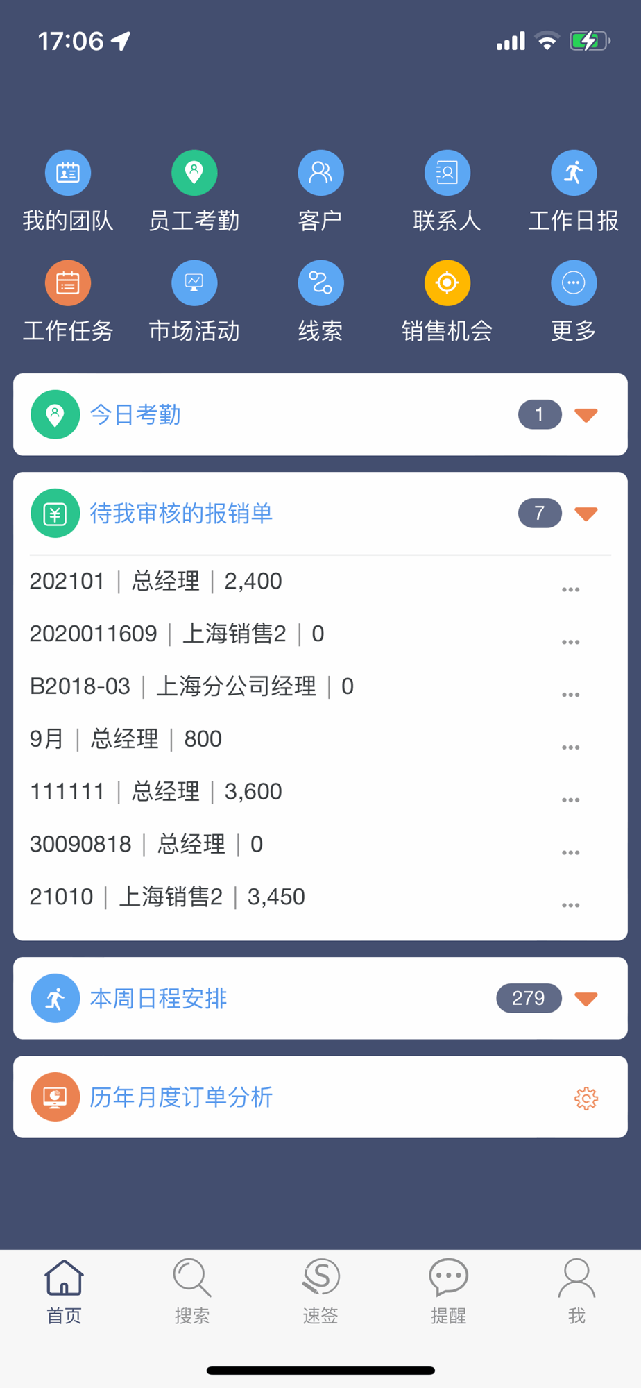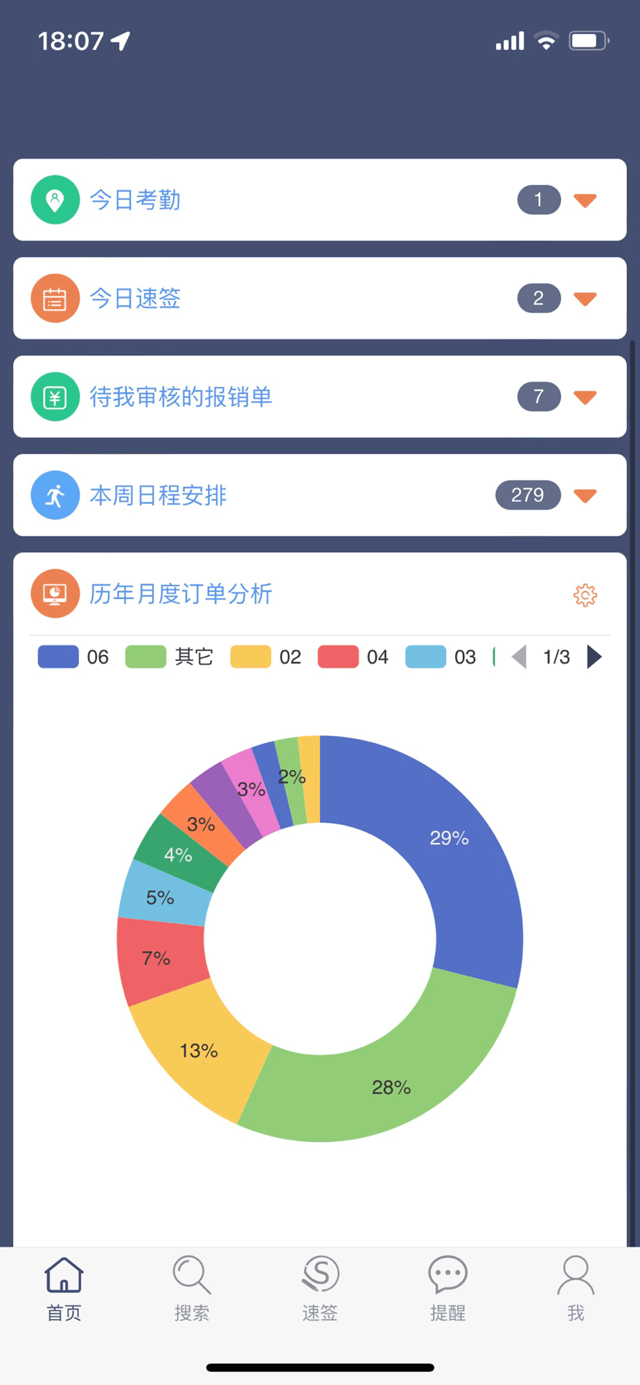移动管理软件,方便快捷的录入和查询信息。可以考勤,定位,导航,及时提醒和处理工作流程。个人主页方便查看个人信息,考勤统计,业绩统计和相关信息。