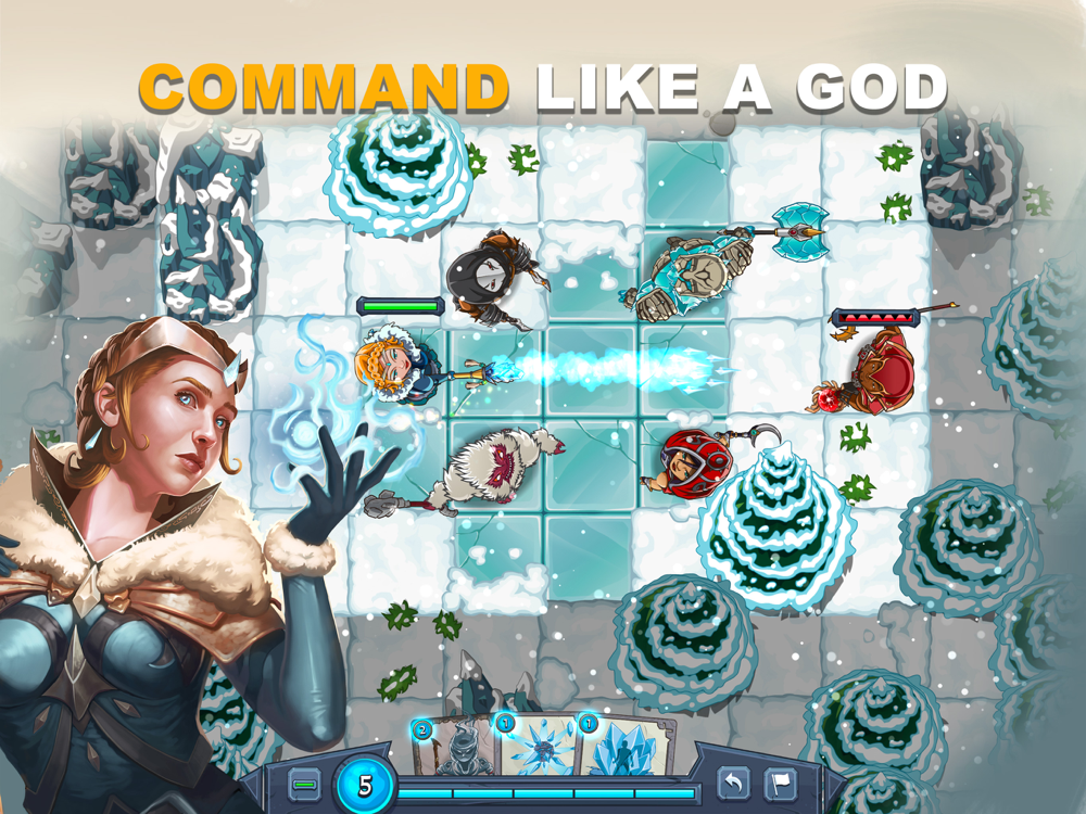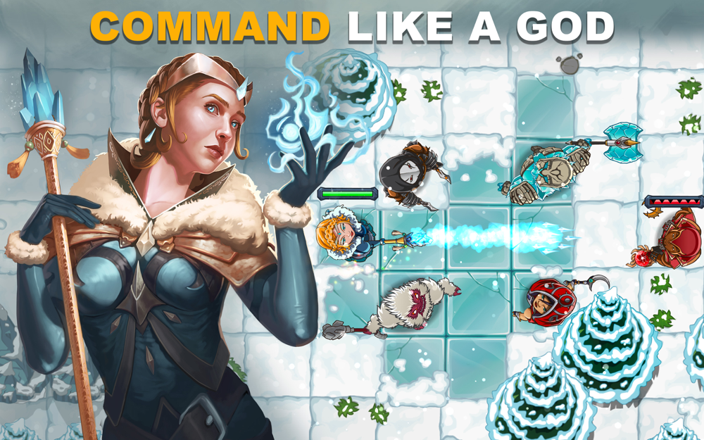 Command from a top-down perspective that gives you ultimate control over battlefield tactics. Your characters look up to you (literally) as their god to indicate they are ready to receive your orders. Commands are intuitive: Drag cards to cast spells. Drag warriors to enemies to attack. Drag healers to injured allies to heal. Play fast and fluid with 3-5 minute battles and without having to wait for animations. You can even undo failed attacks to try different approaches. Endless possibilities are at your fingertips!