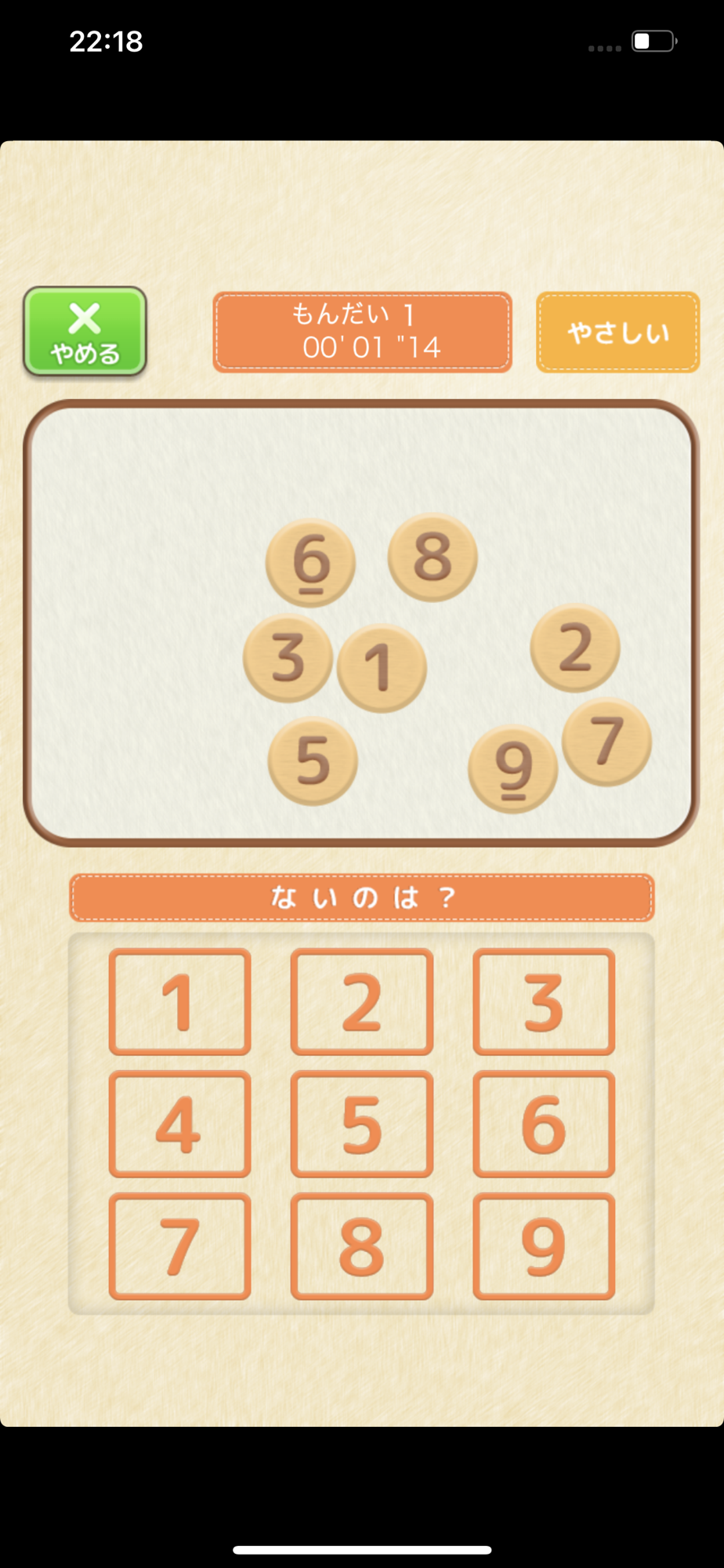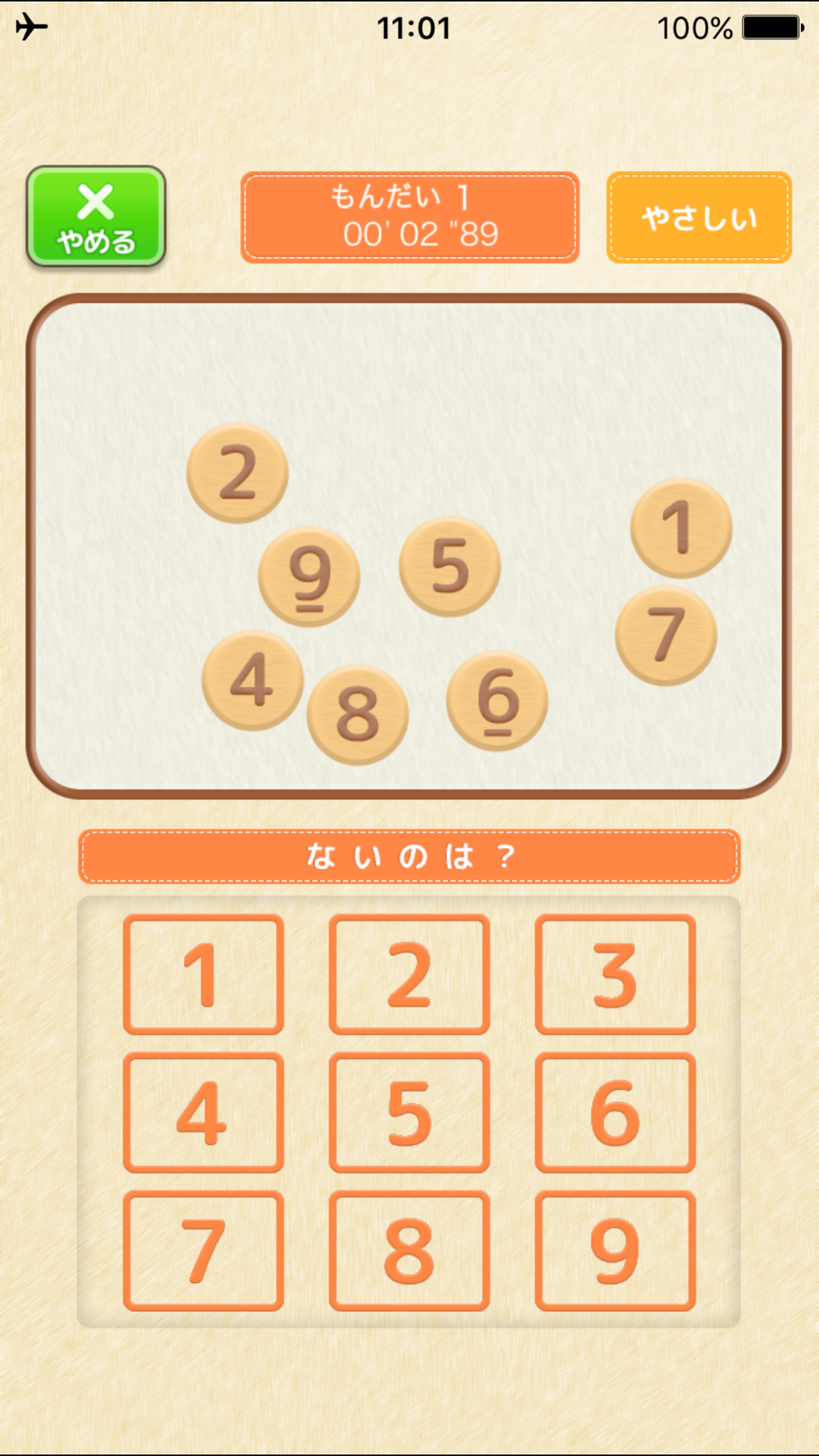 ・ない数字を見つけたら、素早くボタンをタッチしましょう。