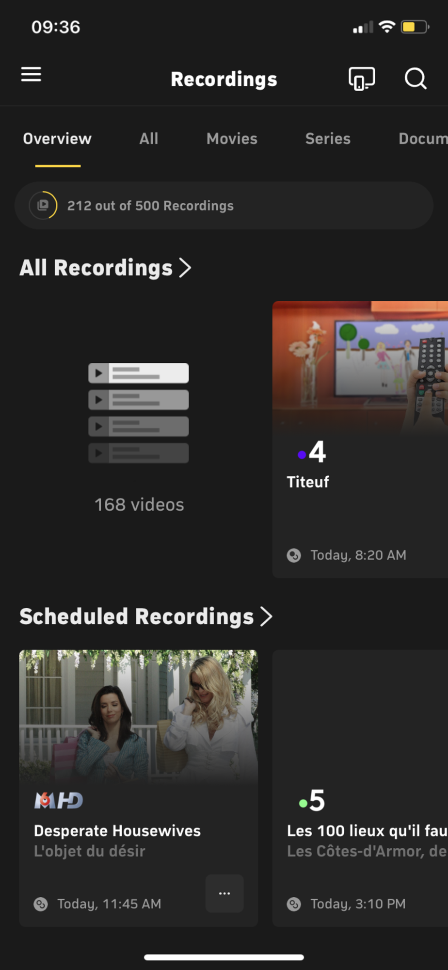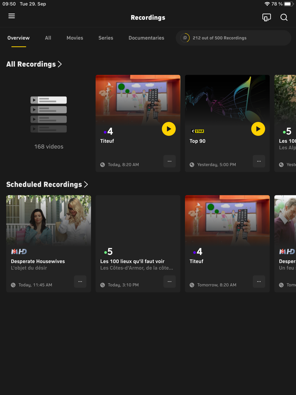 - possibility to record up to 500 programs on the cloud with no time limitation