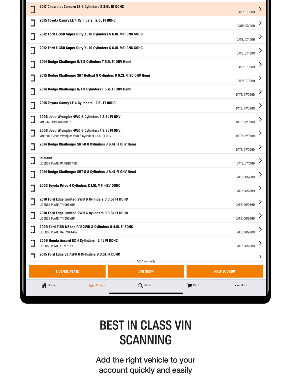 Using our VIN scan and license plate decoder tools, you can quickly identify and manage your vehicles. After using our mobile app to identify your vehicle they are automatically synced with your desktop.
