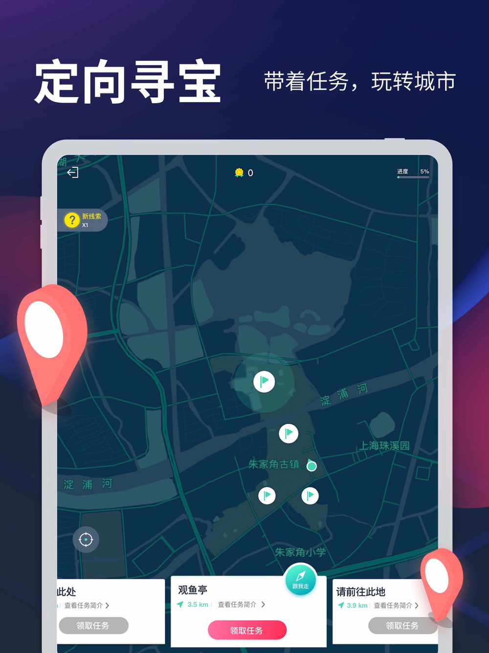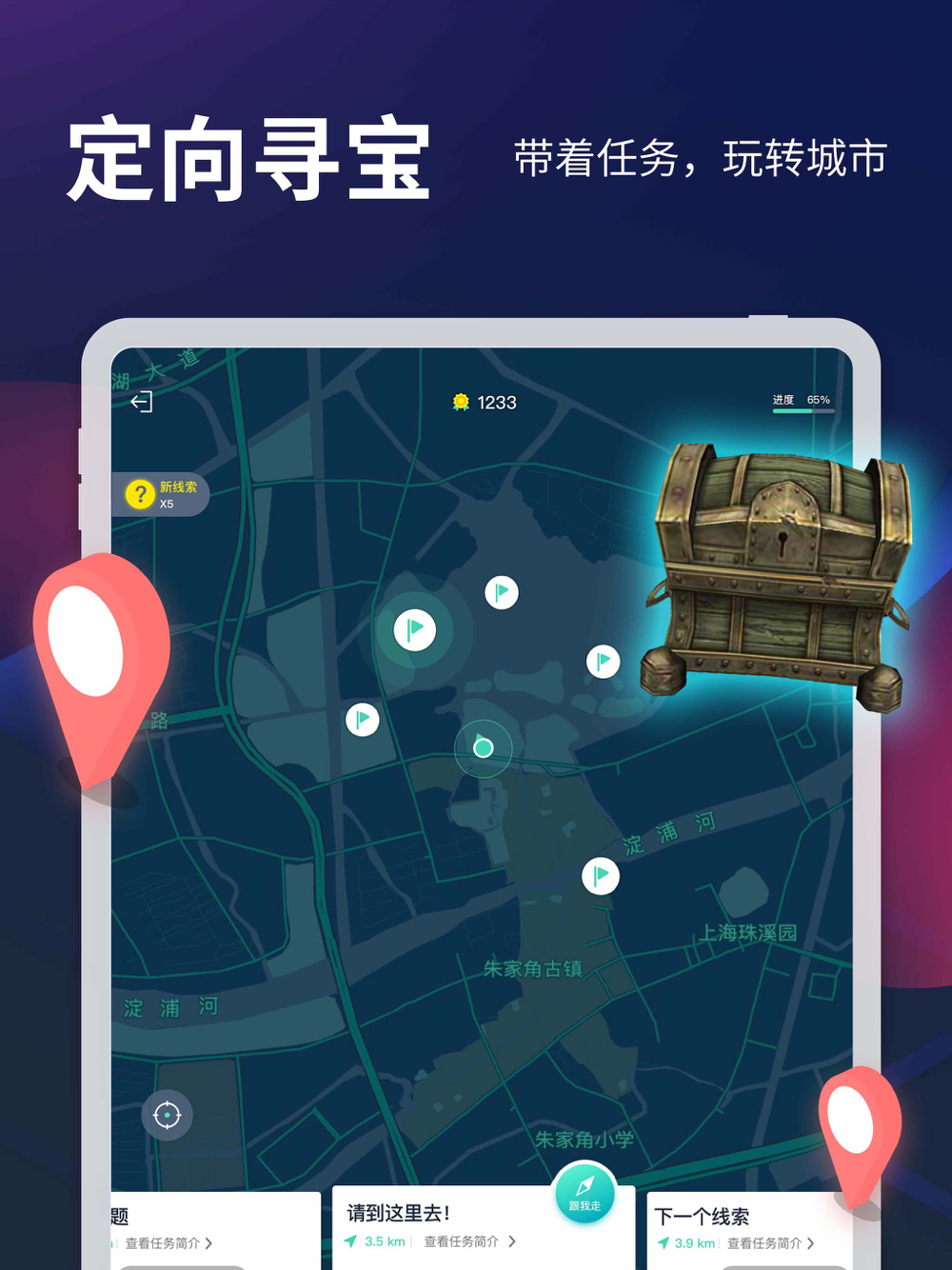 在城市各个角落埋藏一些虚拟的AR宝藏,根据不同剧情设置各种精巧的任务,让客户在城市这座大型游乐场中解谜、探寻。