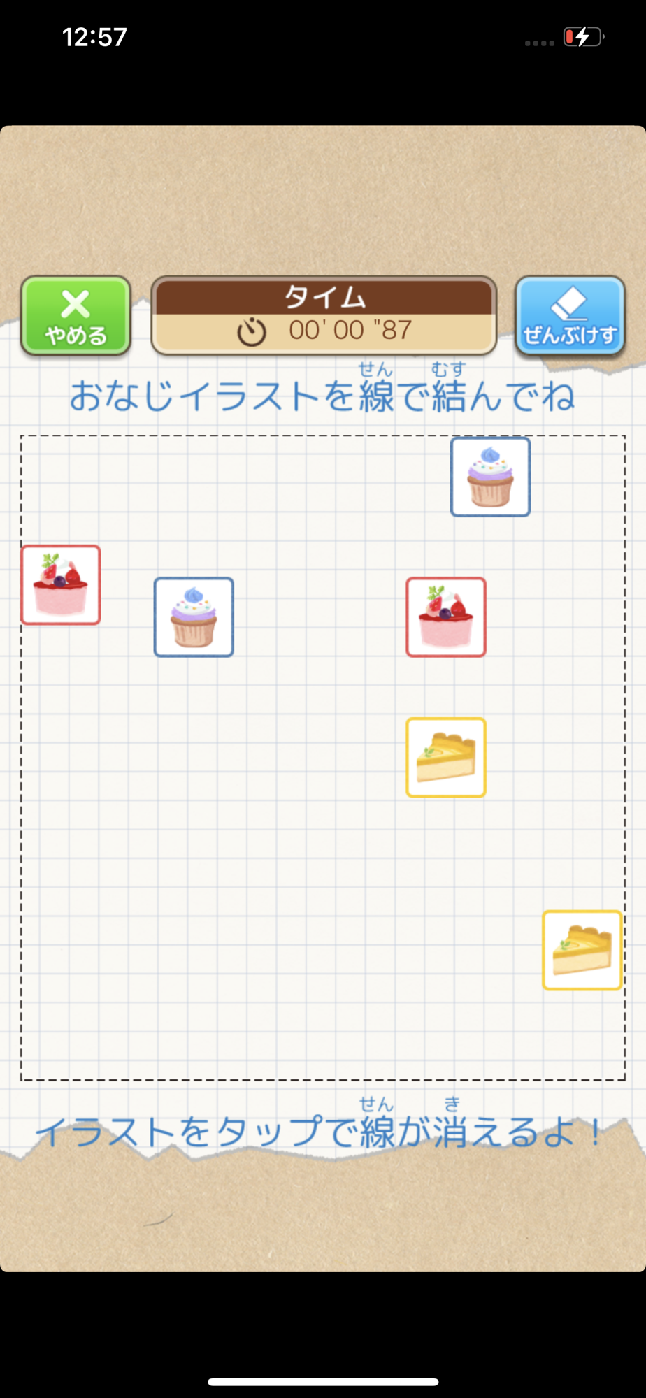 線同士が重ならないようにすべてのイラストを結ぶことが出来たらクリアとなります。