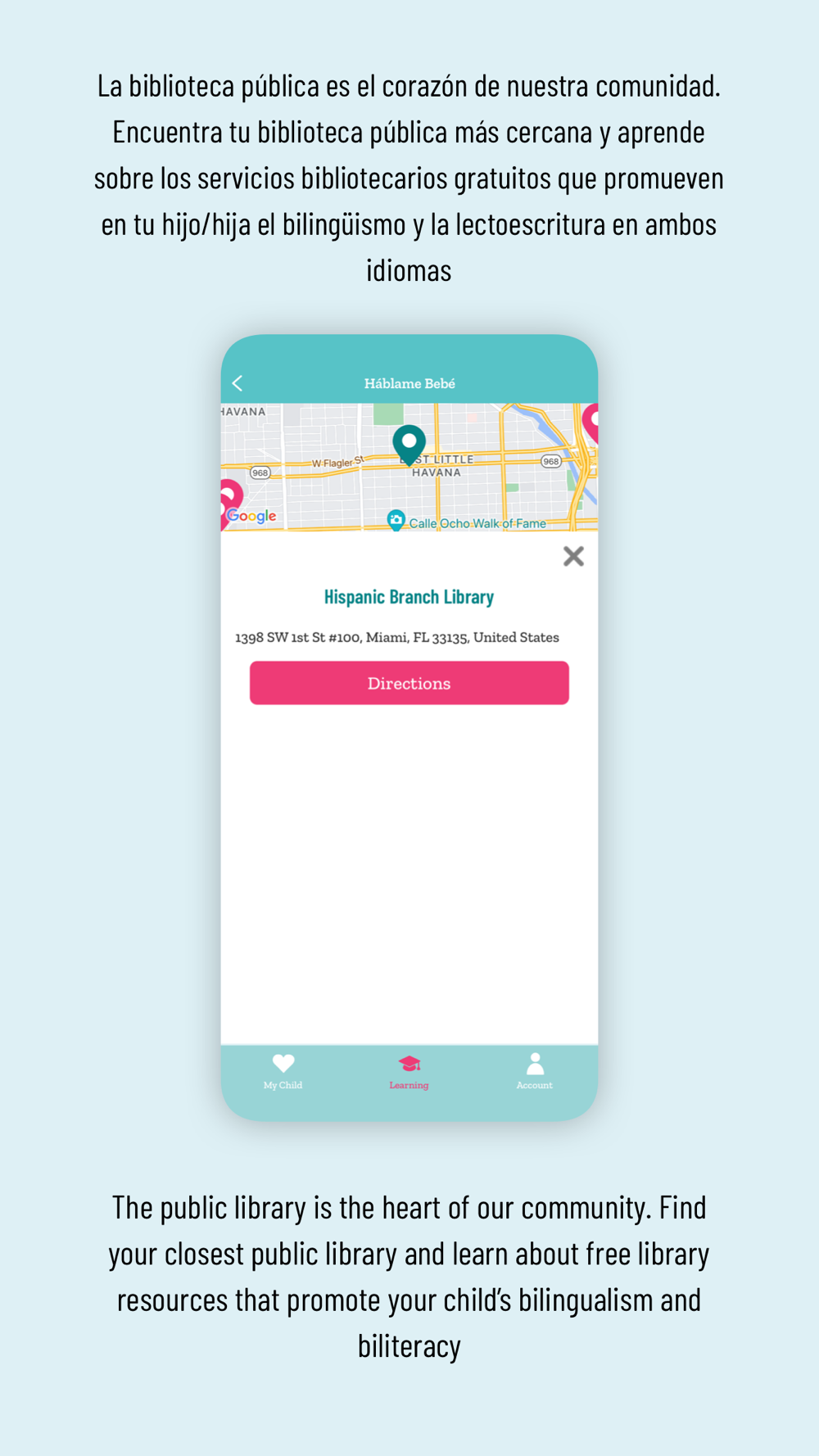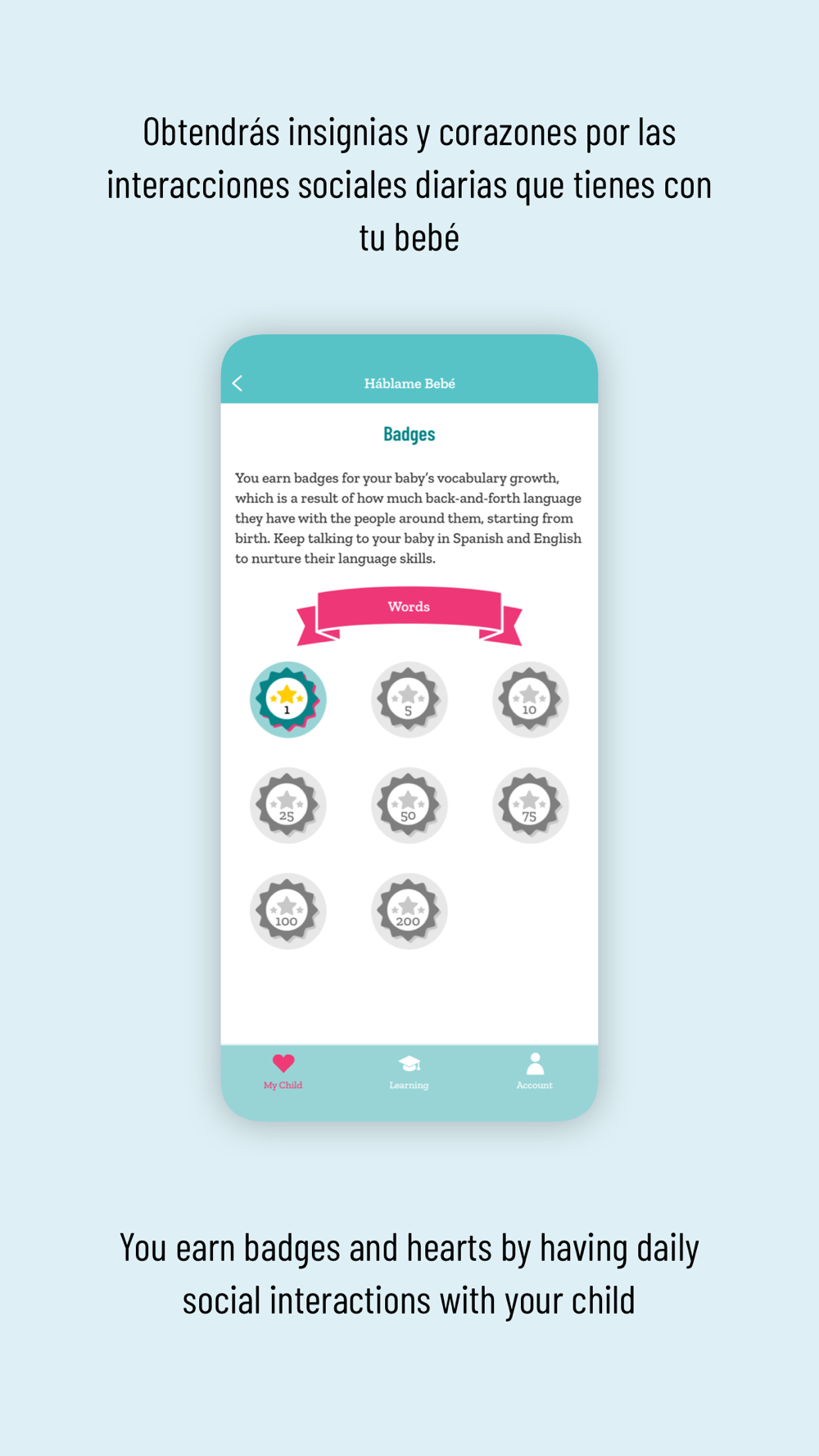 Háblame Bebé is a free app that helps you promote bilingualism, brain development, and cultural pride. Your baby learns best from back-and-forth, responsive, and loving interactions with you. Learn how to track your child's bilingual development and support their growth!