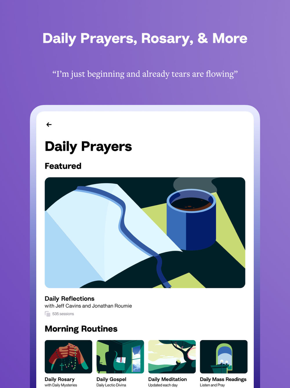 Users can access our daily prayers (including the rosary) and the 9-day Intro Prayer Challenge for free.