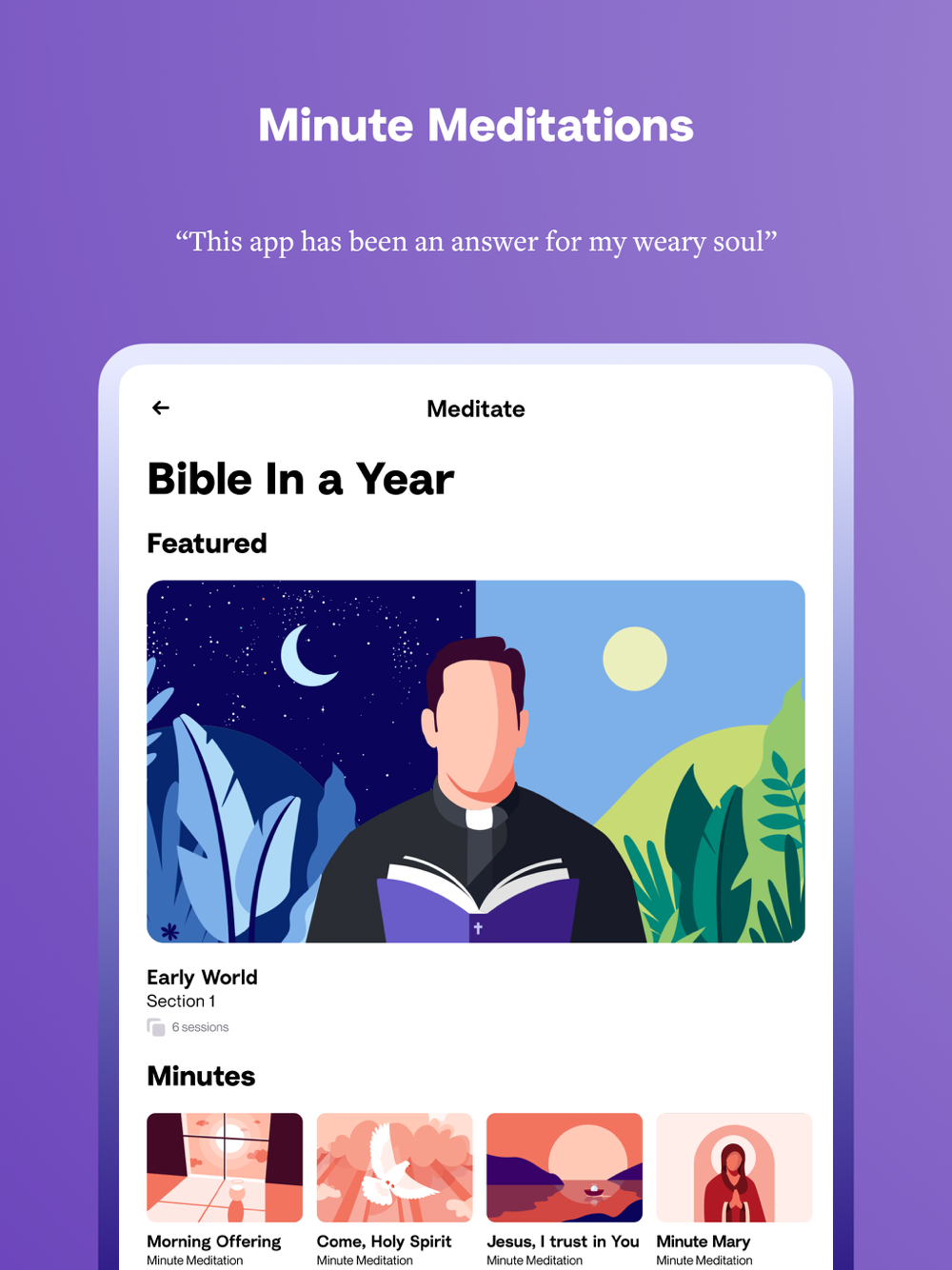 Hallow is a Christian prayer app that offers audio-guided meditation sessions to help us grow in our faith & spiritual lives and find peace in God. Explore over 10,000 different sessions on contemplative prayer, meditation, Catholic Bible readings, music, and more.