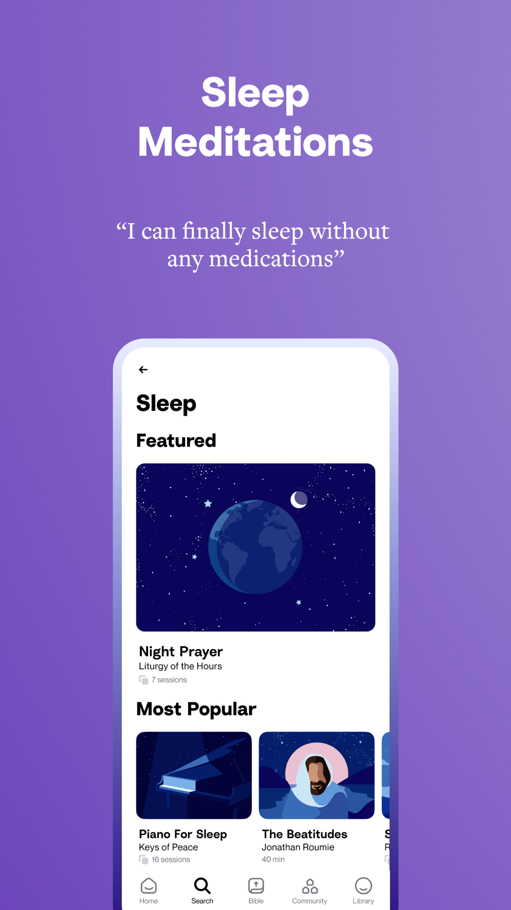 * Sleep Bible Stories: Try Night Prayer from Liturgy of the Hours / Daily Office, and Catholic Bible stories read by folks like Jonathan Roumie from the Chosen or Fr. Mike Schmitz from the New American Bible