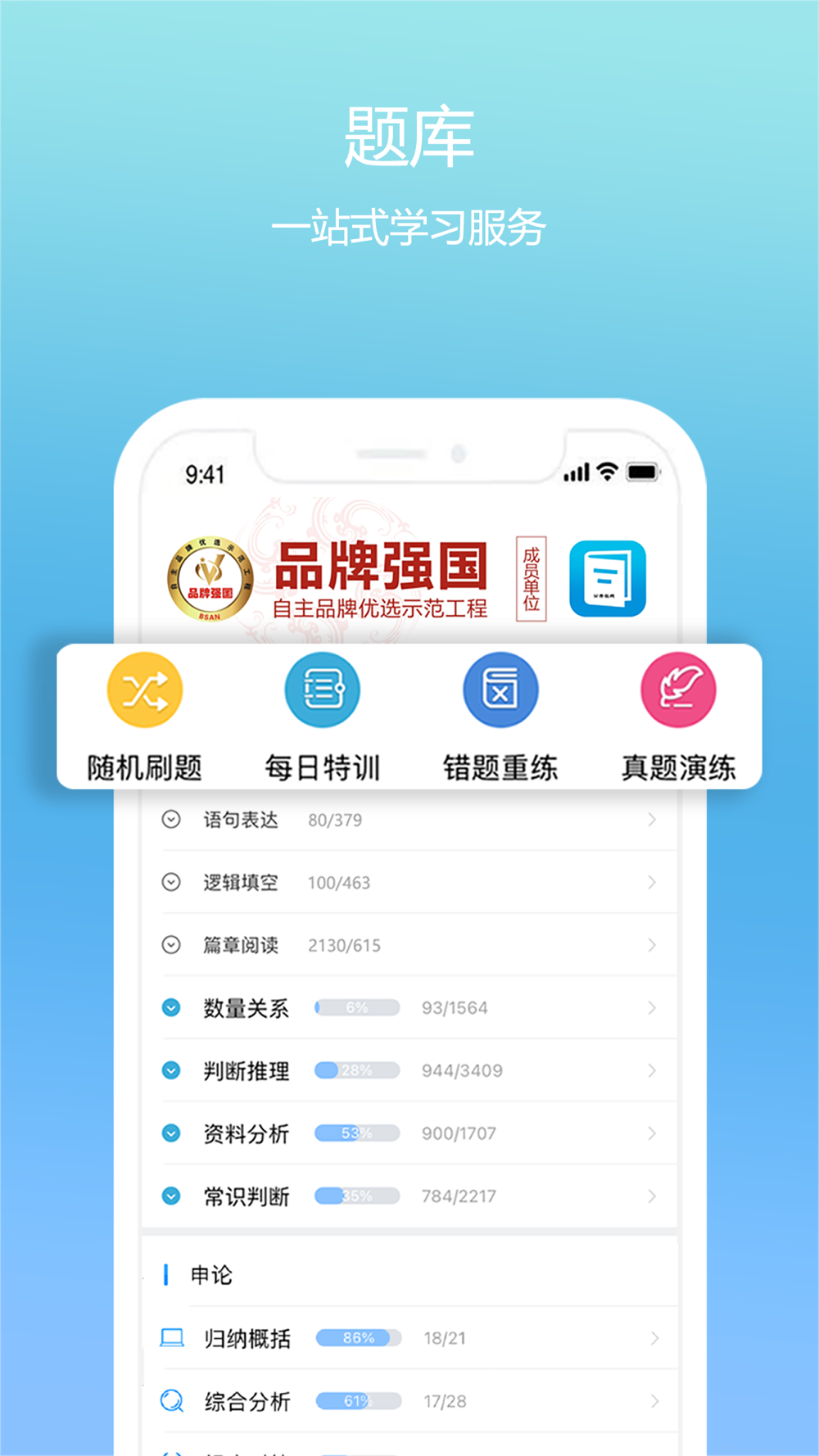 二、 专项练习:覆盖全国各地行测试题,考生可自主选择刷题先后