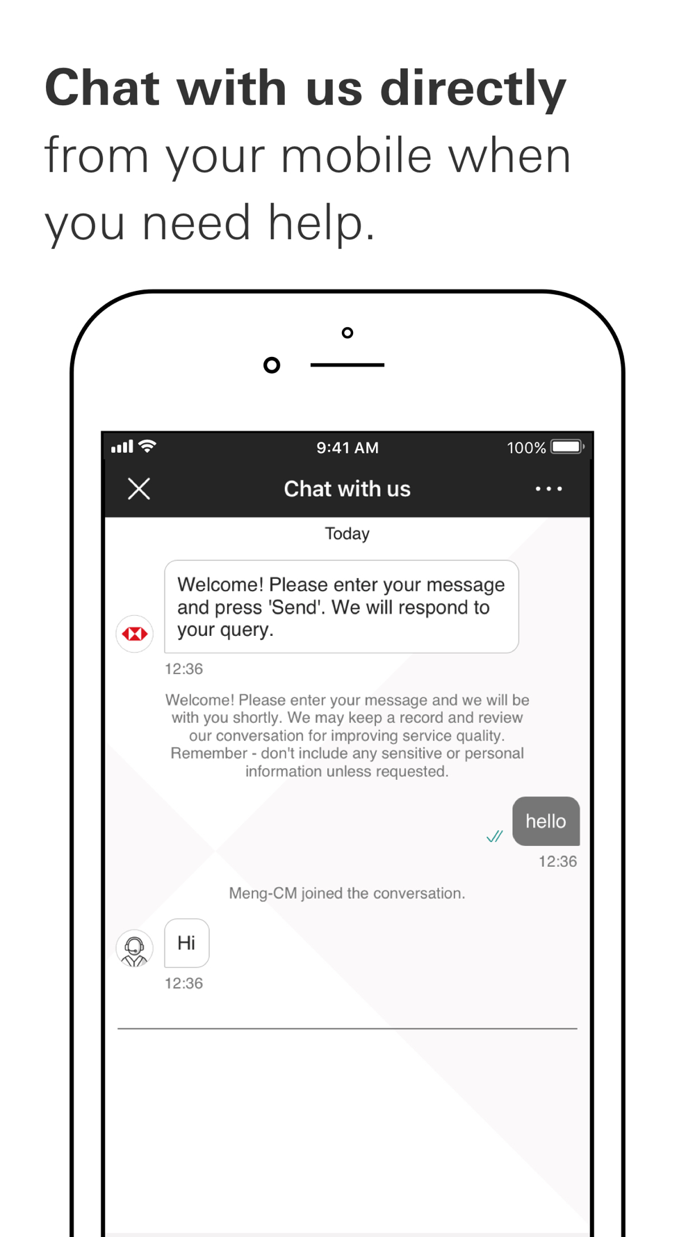 • Mobile Chat – chat with us directly using your mobile device whenever you need help