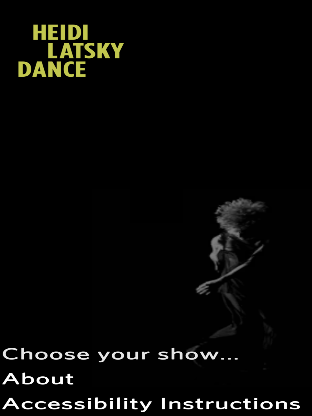 The Heidi Latsky Dance App features an innovative take on audio description, company bios, a screen readable program for the blind, and captioning of the score for the deaf. Through the app you will have an opportunity to stay connected with the company during and between shows.