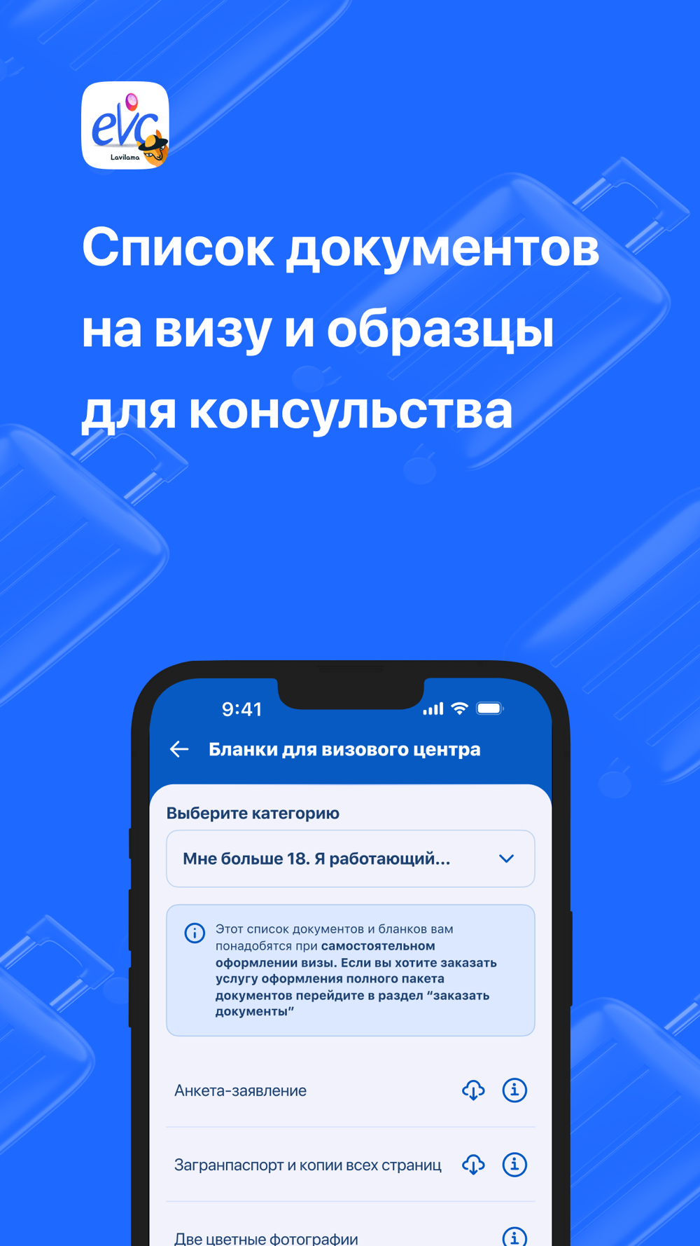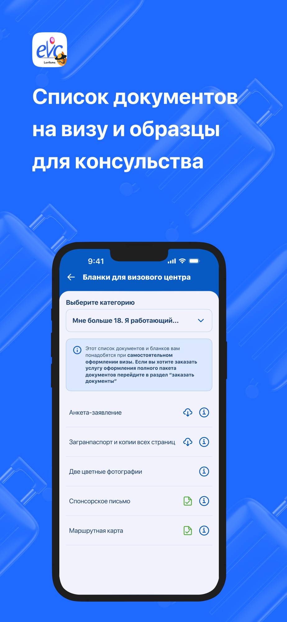 - получить список документов для визы с образцами и инструкциями;